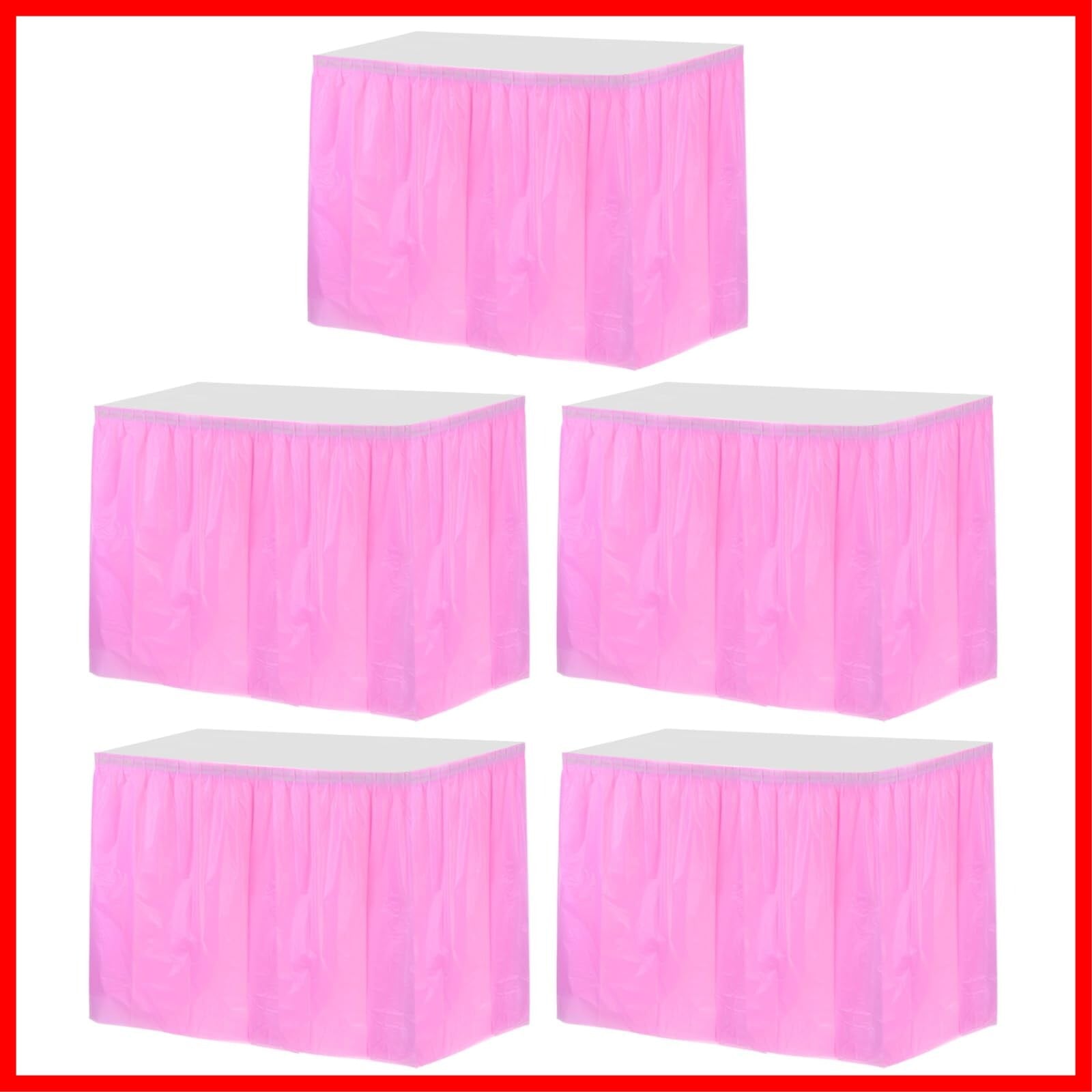 uxcell 5パック ライトピンク プラスチックテーブルスカート 矩形テーブル用 29"×14フィート テーブルスカート 誕生日や結婚式パーティー用 使い捨てテーブルカバー
