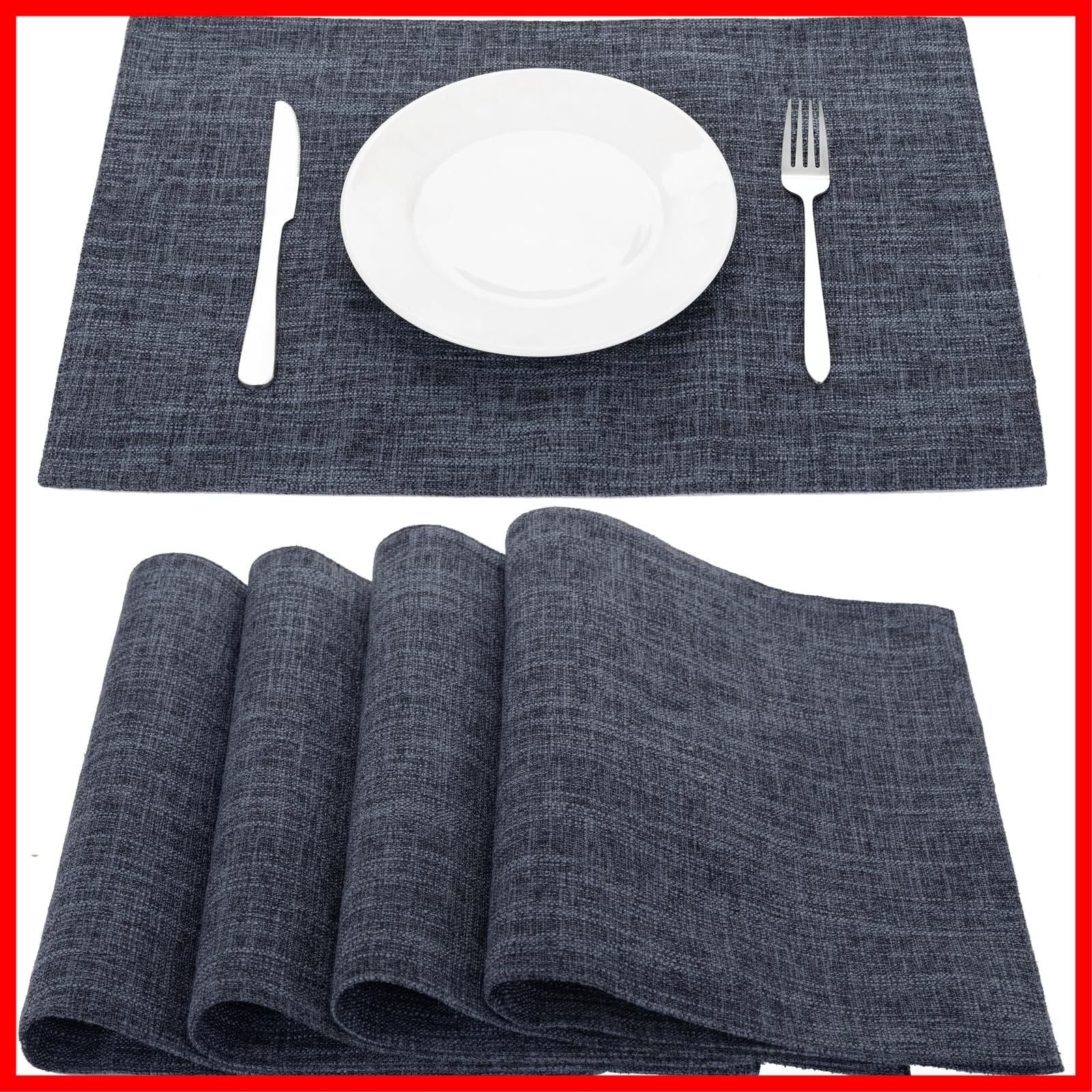 Senteria ランチョンマット布製 綿麻 マット 二層生地縫製 無地 和風 柔軟性 断熱 滑り止め お手入れ簡単 丸洗い キッチン 家庭用 レストラン用 4枚セット(ブラック)