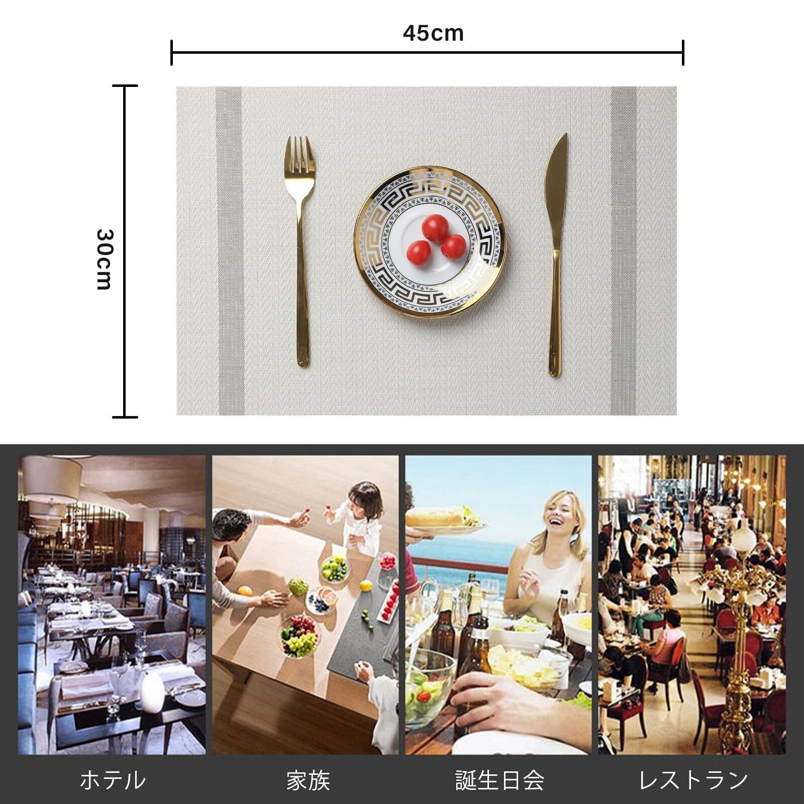 サイズ:約45×30cm、数量:4個セット。高級感のあるプレースマットは、食器を引き立て、食卓を美しく彩ります。