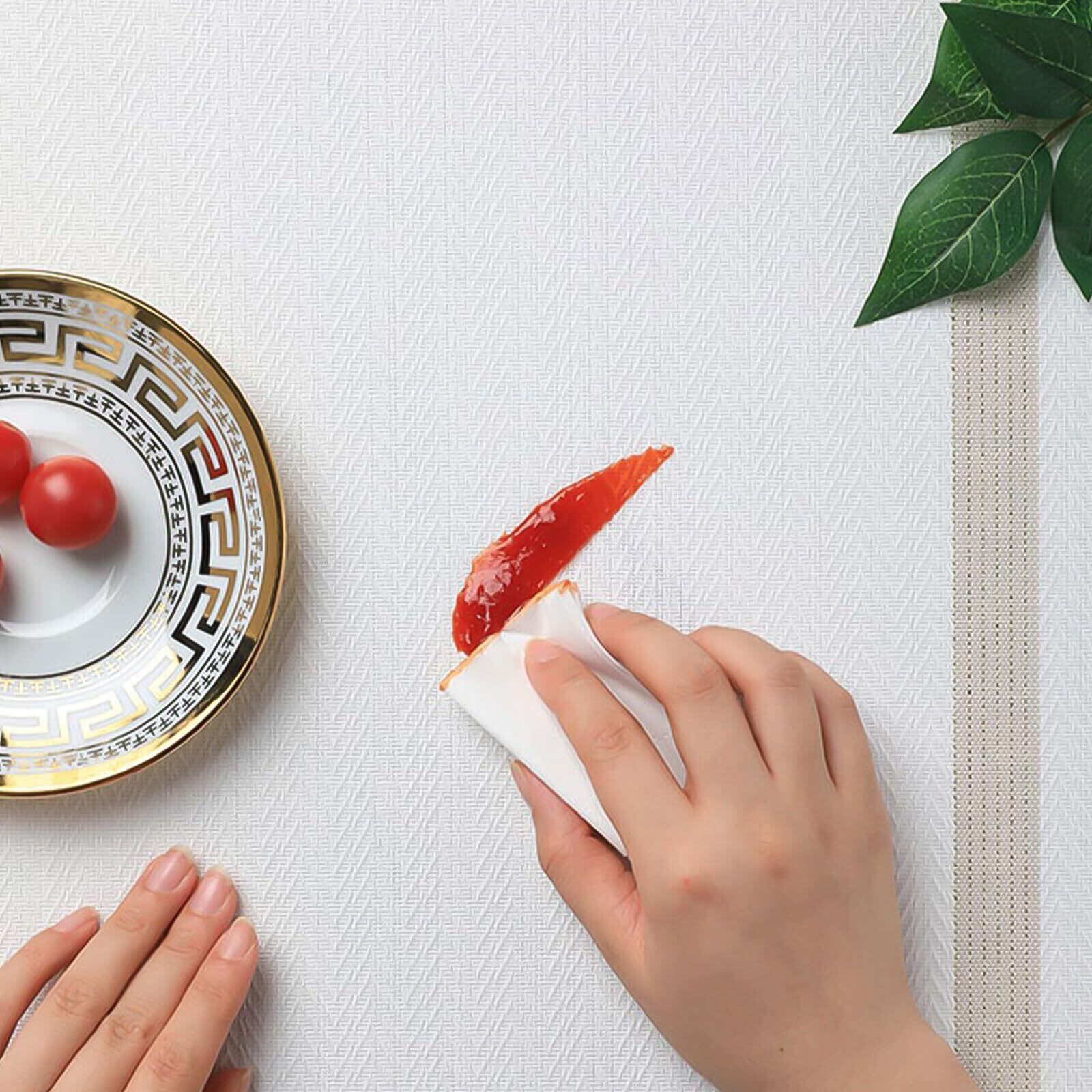 ポリ塩化ビニル(PVC)素材を使用しているため、汚れが気になる食事中も安心!こぼれた飲み物や食べ物の汚れもサッと拭くだけで簡単にお手入れできます。水洗いも可能なので、いつでも清潔を保てます。
