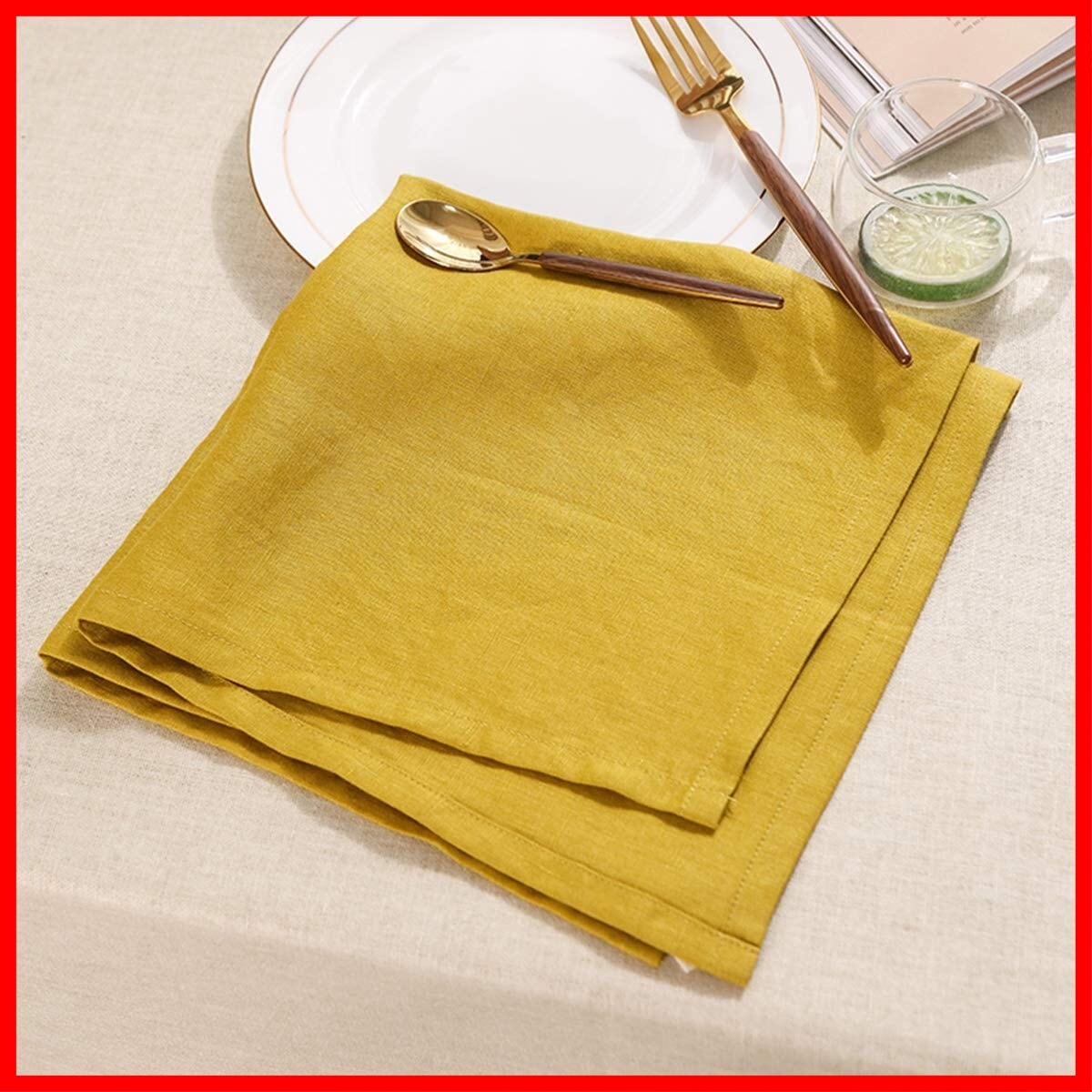 【人気商品】Amazhiyu テーブル ナプキンセット ナフキンセット ワイントーション テーブルナプキン 100%麻製 4 個セット |パーティー、自宅、カフェ、レストラン、ホテルに最適 - 洗濯機で洗えます 黄色