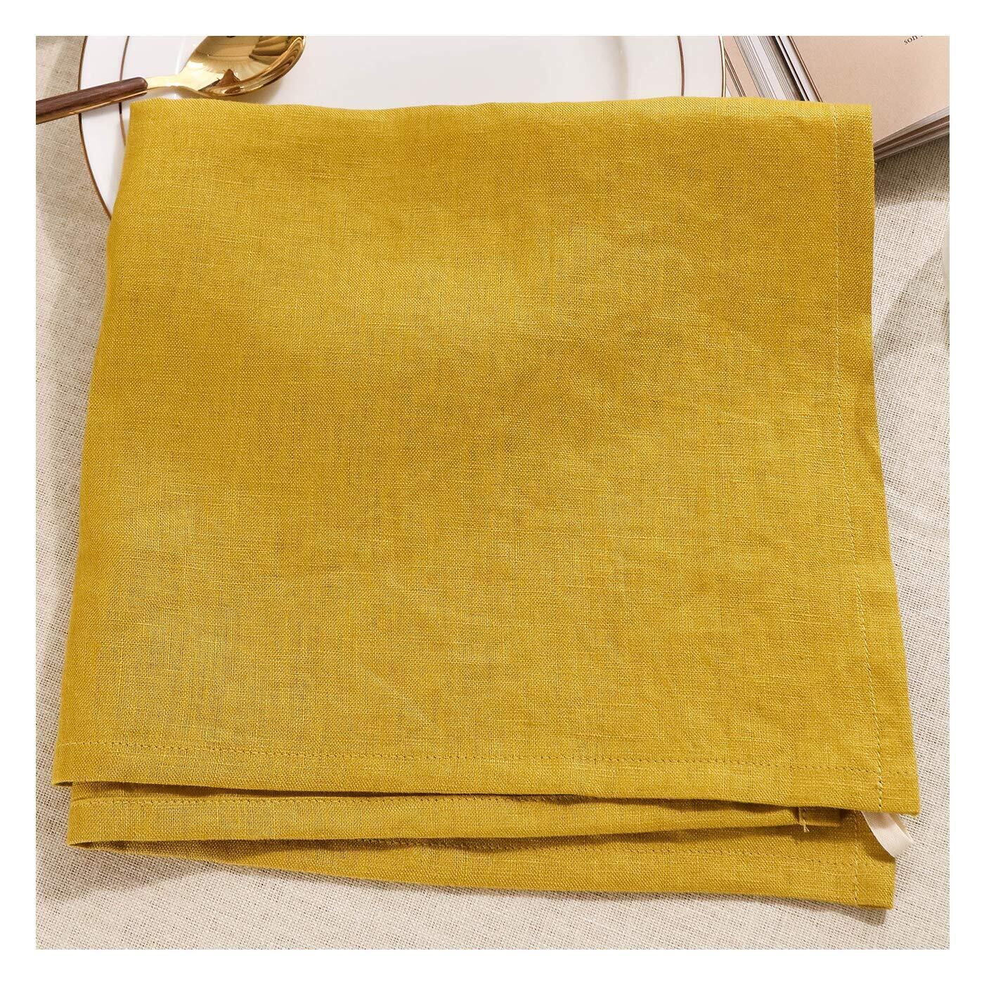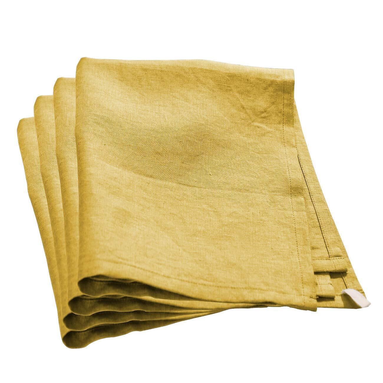 Amazhiyu テーブル ナプキンセット ナフキンセット ワイントーション テーブルナプキン 100%麻製 4 個セット |パーティー、自宅、カフェ、レストラン、ホテルに最適 - 洗濯機で洗えます 黄色