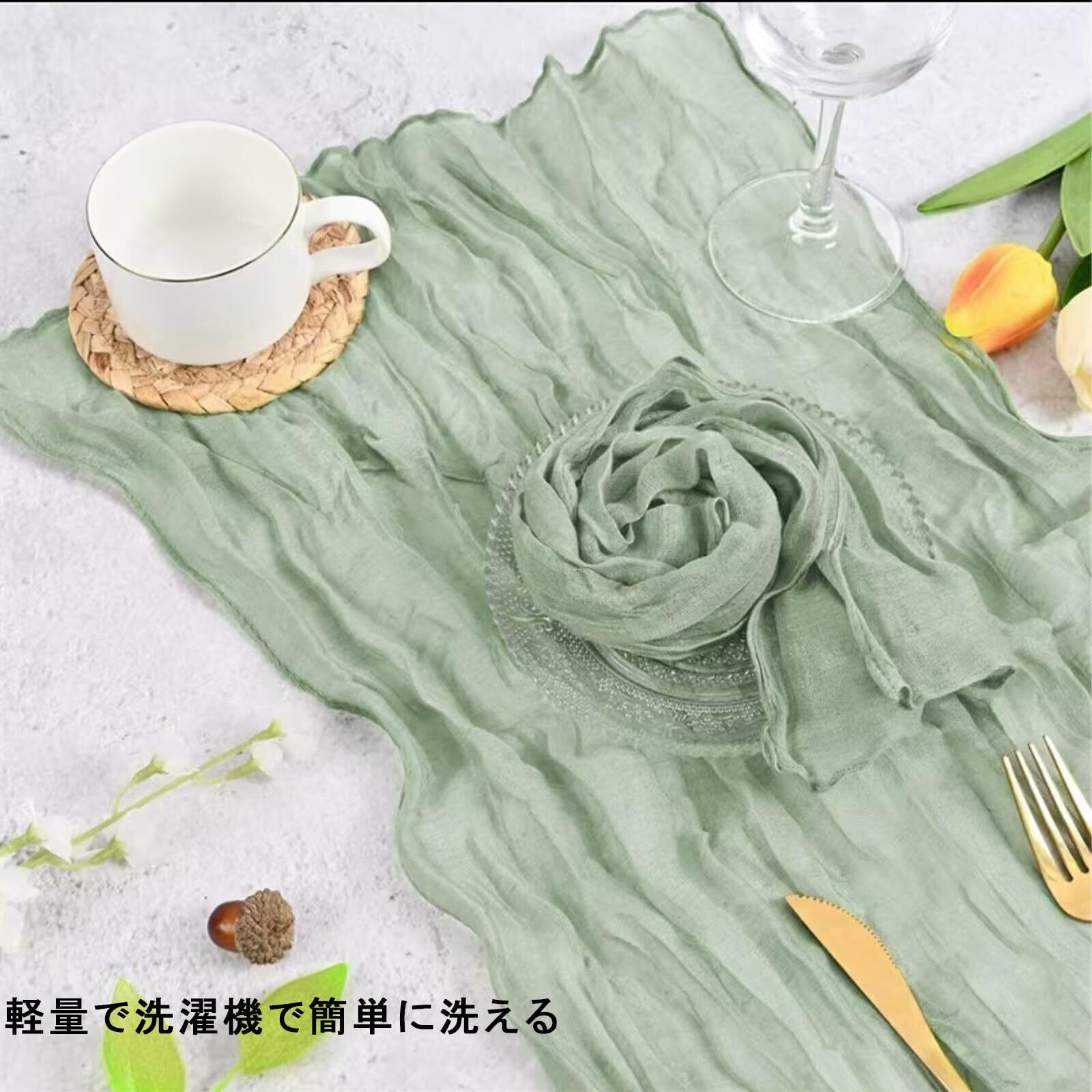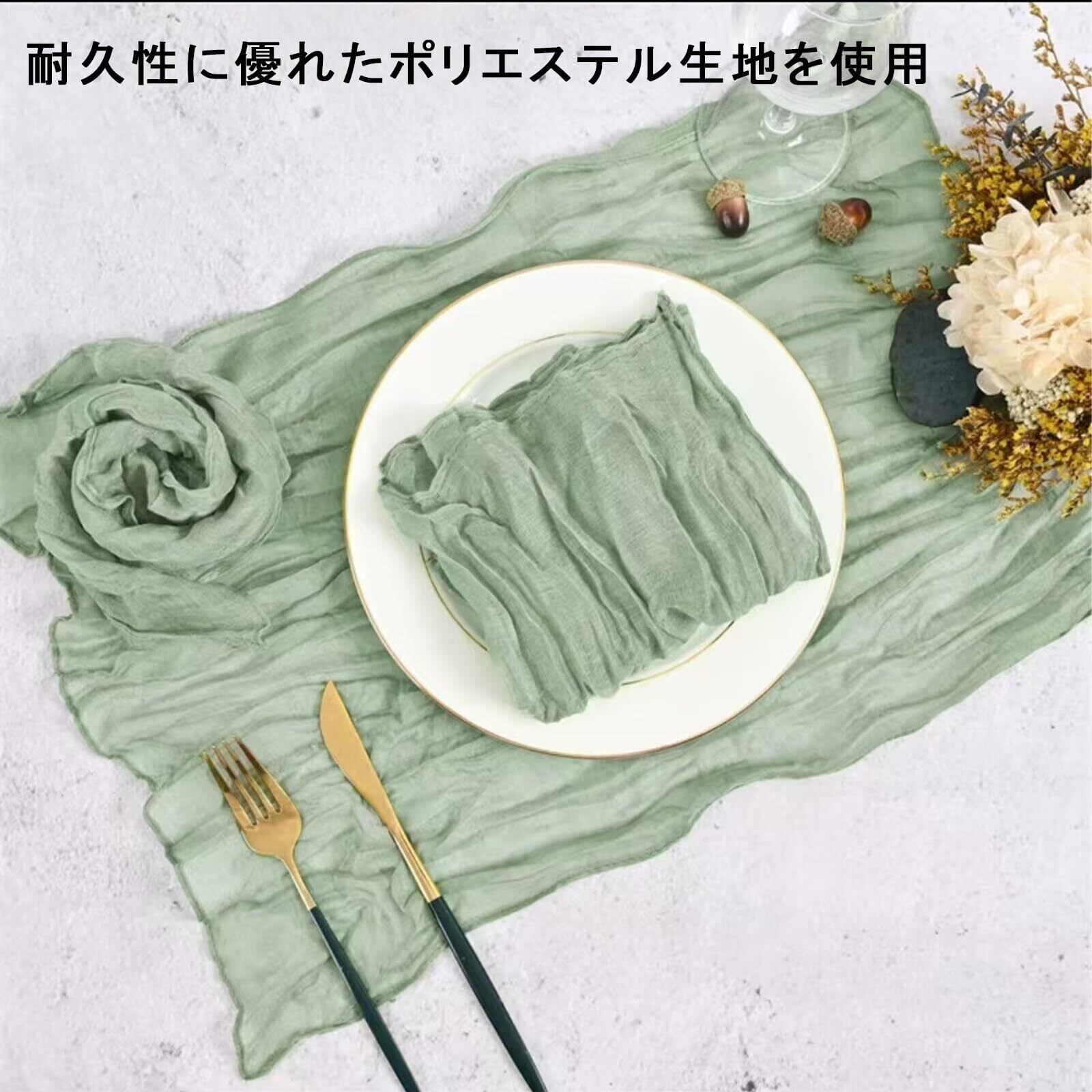 このテーブルナプキンは、落ち着いたグリーン色が魅力です。ガーゼや寒冷紗のような柔らかな生地感があり、食器やテーブルを美しく彩ります。日常使いはもちろん、結婚式やブライダルシャワー、パーティーの装飾にも最適です。