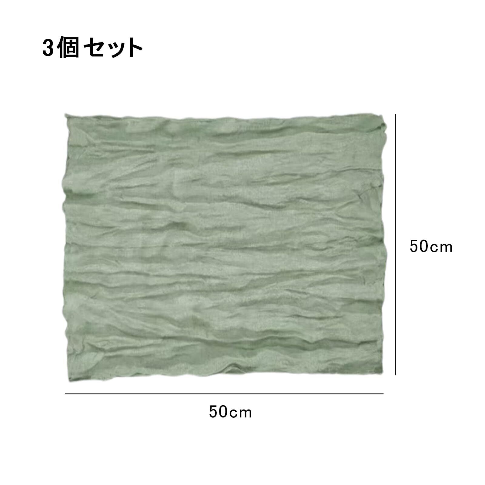 【特価セール】テーブルナプキン 布 ランチナフキン 3枚セット 50×50生地 洗える 再利用可能 グリーン 寒冷紗 ガーゼ ポリエステル パーティーの装飾、結婚式、装飾、ブライダルシャワー、家族、日常使用