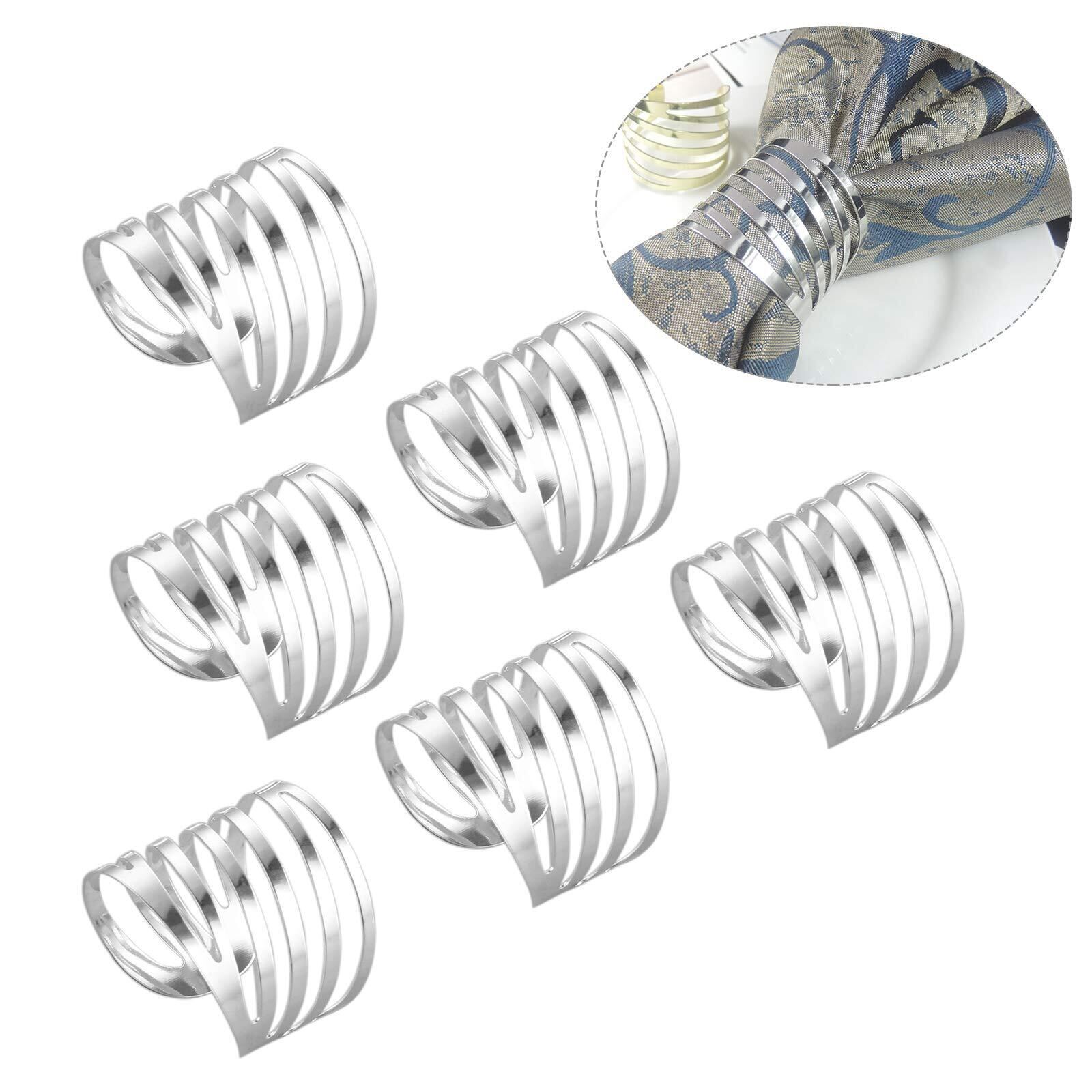 ナプキンリングのサイズ:直径:約4.5cm /1.77インチ 材質:金属 カラー:シルバー セット:6個