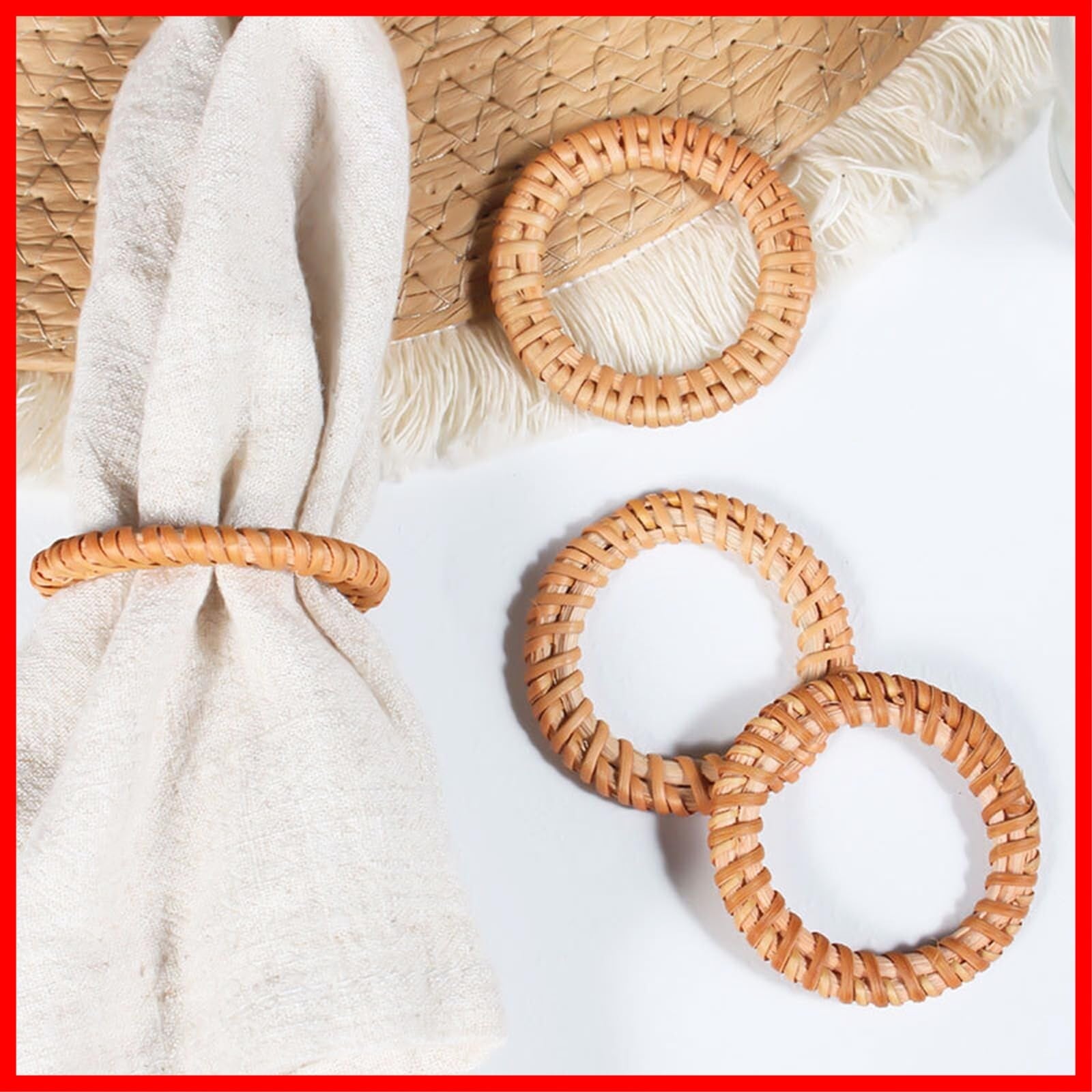 多用途でエレガントな織ナプキンリング - このボヘミアンナプキンリングは、ゲストを感動させるダイニングシーンの優雅さを簡単に高めます。フォーマルなディナーパーティー、カジュアルな集まり、特別なお祝いなど、織りナプキンリングの自然な魅力がテーブルの装飾に素朴な美しさを加え、さまざまな機会やテーマに最適です。