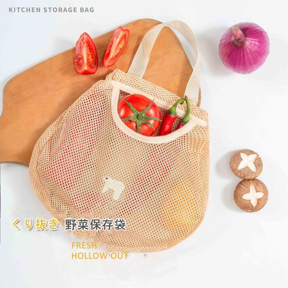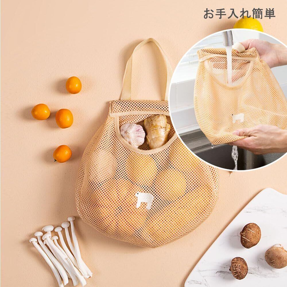 キッチンやバスルームをスッキリさせる「野菜 吊り下げ 玉ねぎ 保存ネット」で、快適な収納を実現しましょう!/特徴:この通気性に優れた保存ネットは、玉ねぎやじゃがいもなどの根菜を新鮮に保ちながら、見た目もスタイリッシュに整えます。再利用可能なデザインで、環境にも優しいアイテムです。