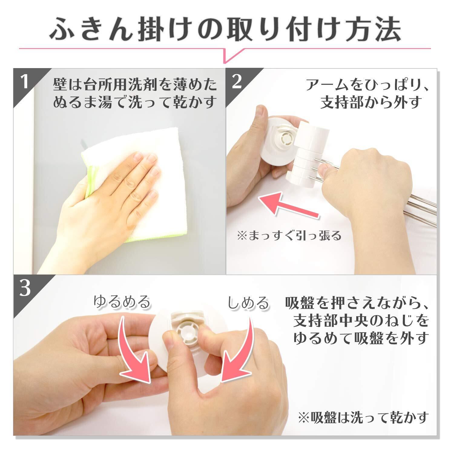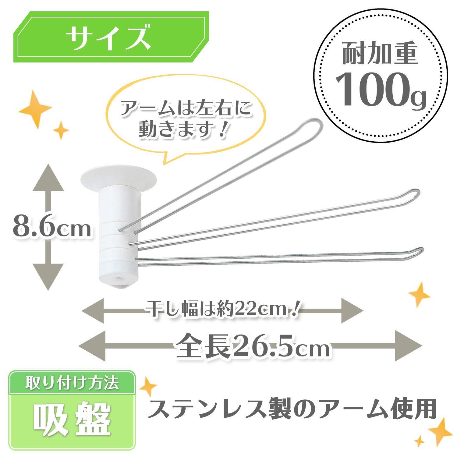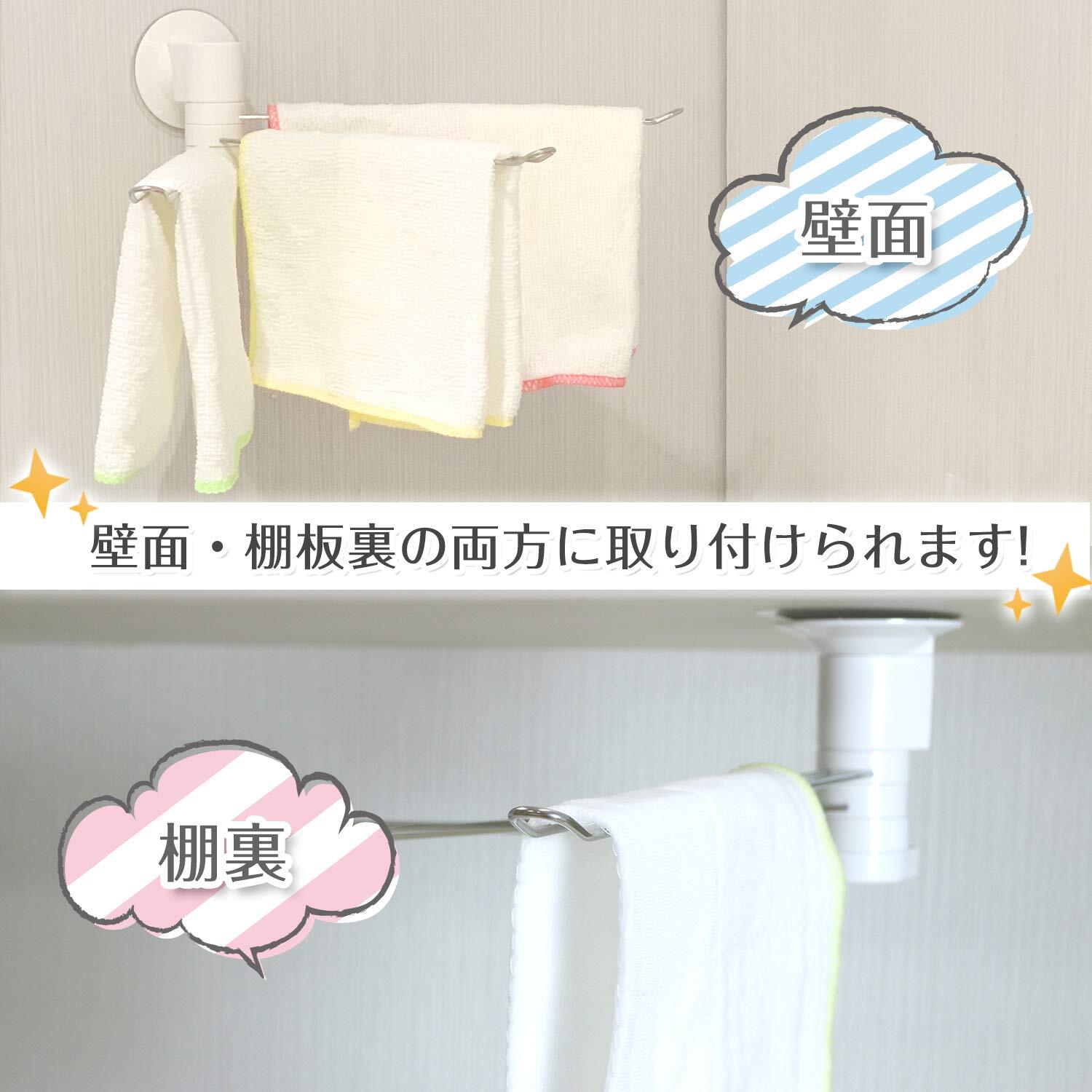 吸盤式なので、取り付けが簡単でスペースを有効活用できます。また、ふきんを掛ける際の使いやすさも追求されており、使い道が広がります。