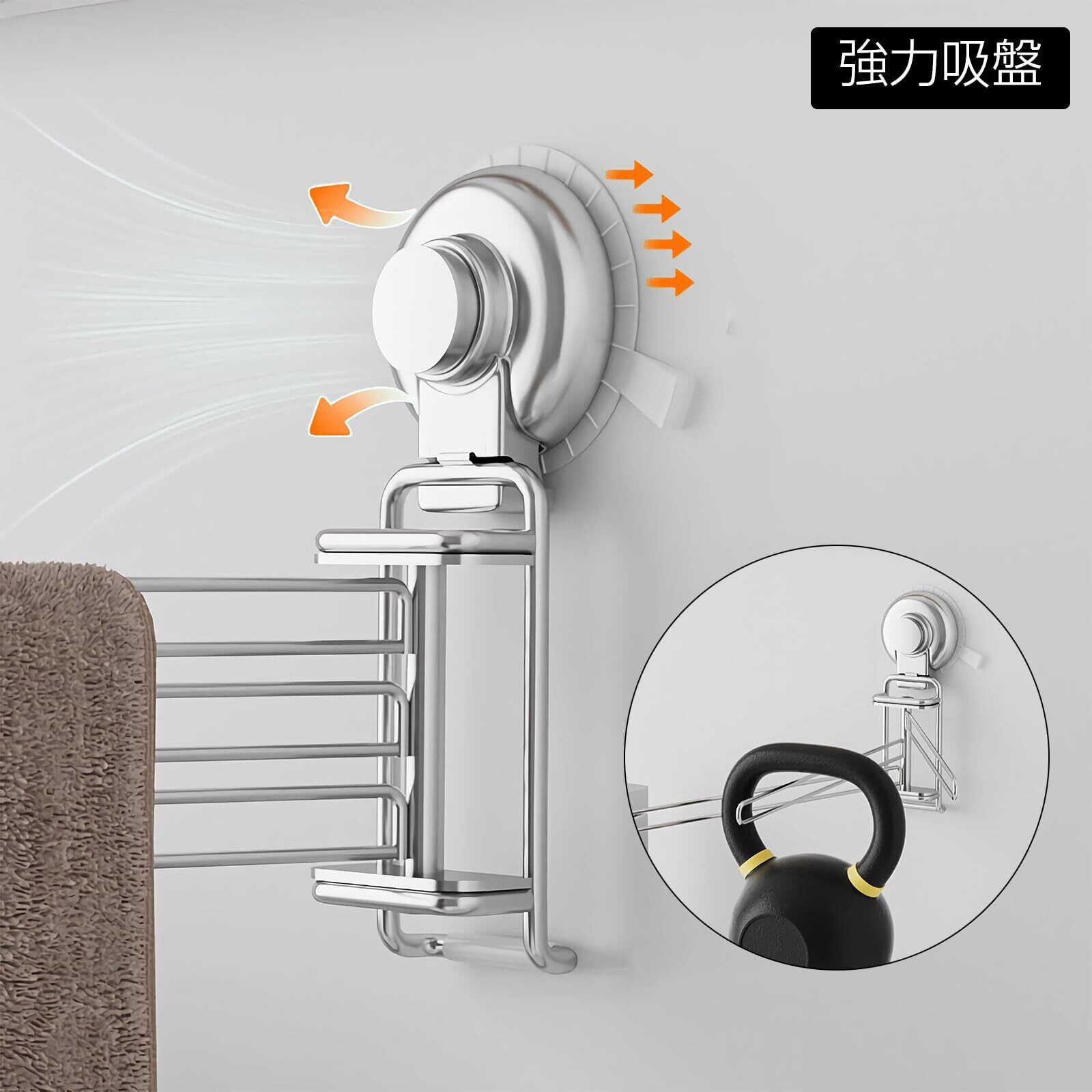 【高耐荷重】 - 18/8ステンレス製ラックと強化ABS吸盤を採用。最大5kgの重量をしっかりと支えます。タオル、キッチン用品、重いバッグなどに最適です。