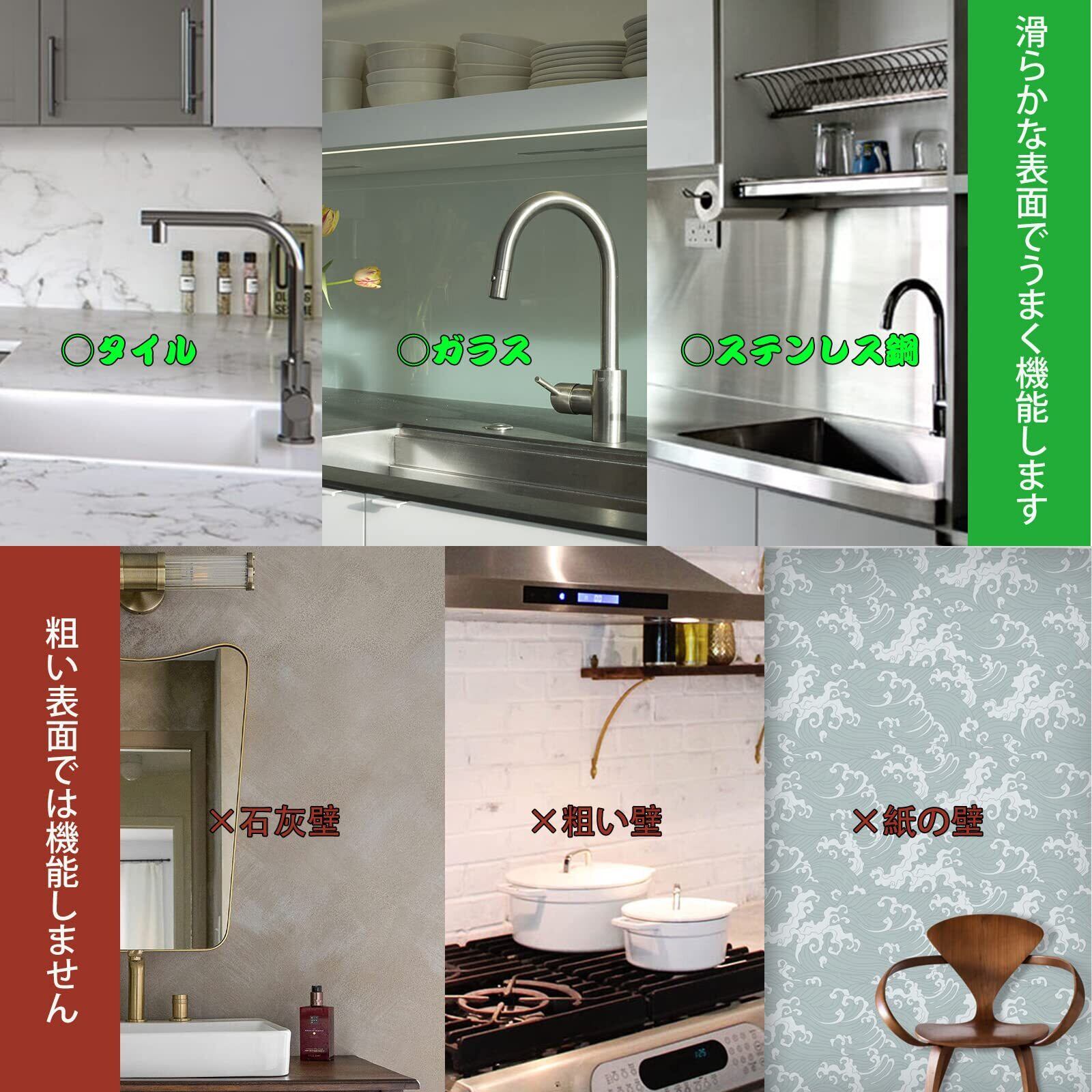 【工具不要で簡単設置】 - 穴あけ、ネジ、接着剤は不要!タイル、ガラス、ステンレスなど、滑らかで多孔質でない表面に押し付けるだけで取り付けられます。傷をつけずにきれいに剥がせます。