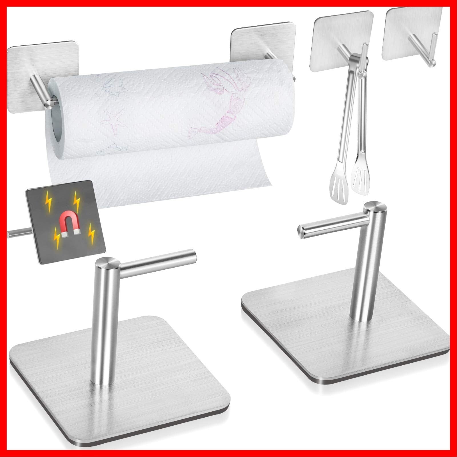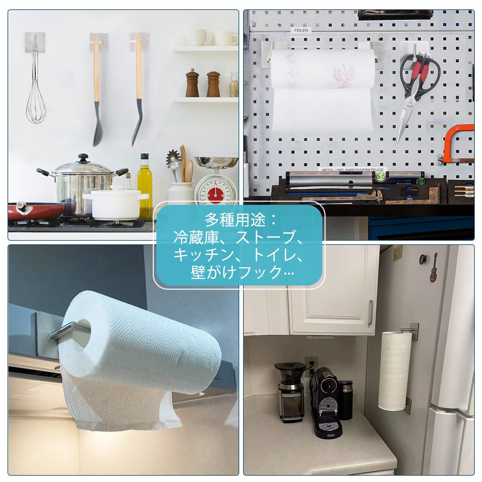 【在庫セール】キッチンペーパーホルダー マグネット ステンレス トイレットペーパーホルダー 冷蔵庫フック 壁掛け フック 調節可能 (2個-マグネット-銀)