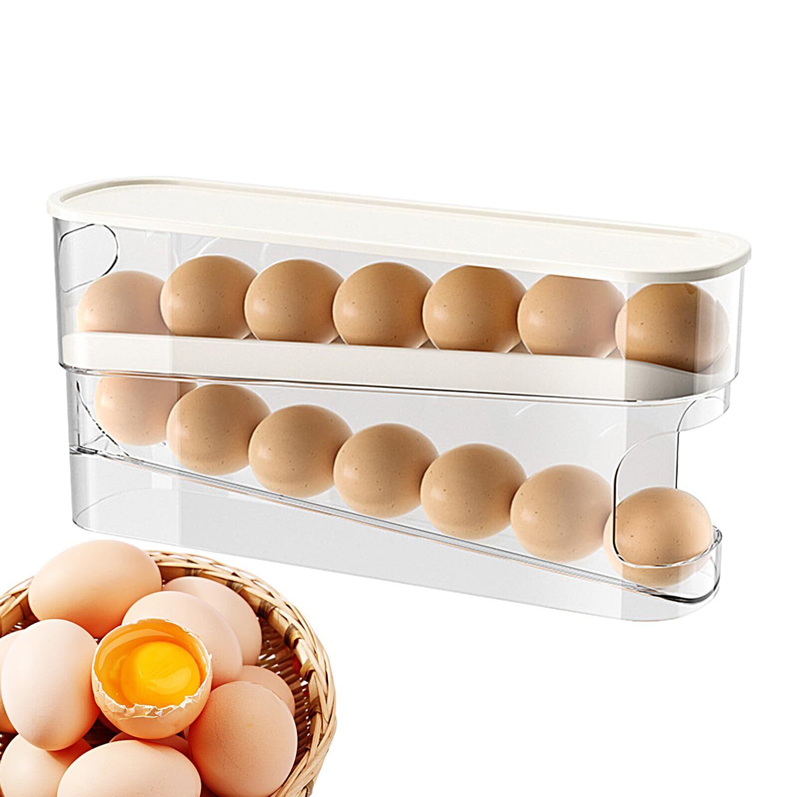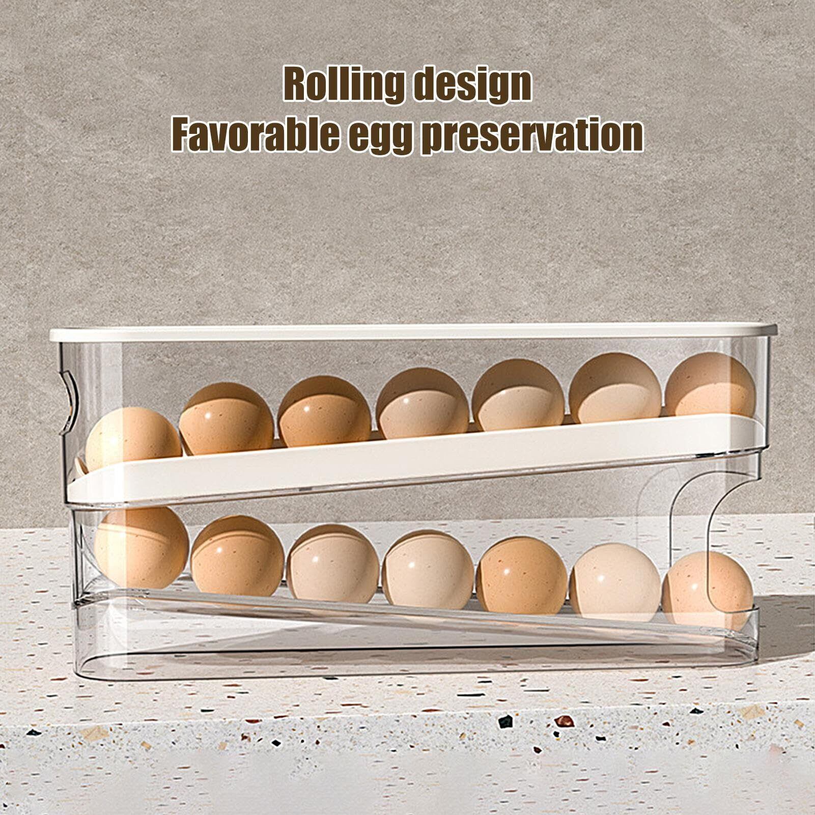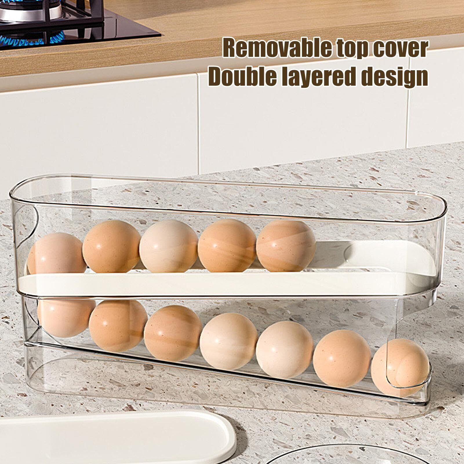 Humdcdy ローリングエッグディスペンサー 2段卵収納ラック ローリングエッグディスペンサー 冷蔵庫自動重力卵ボックス 卵12個収納 キッチンカウンタートップ 冷蔵庫ドア用