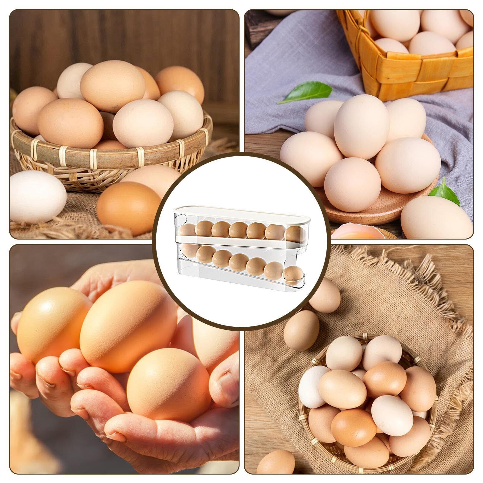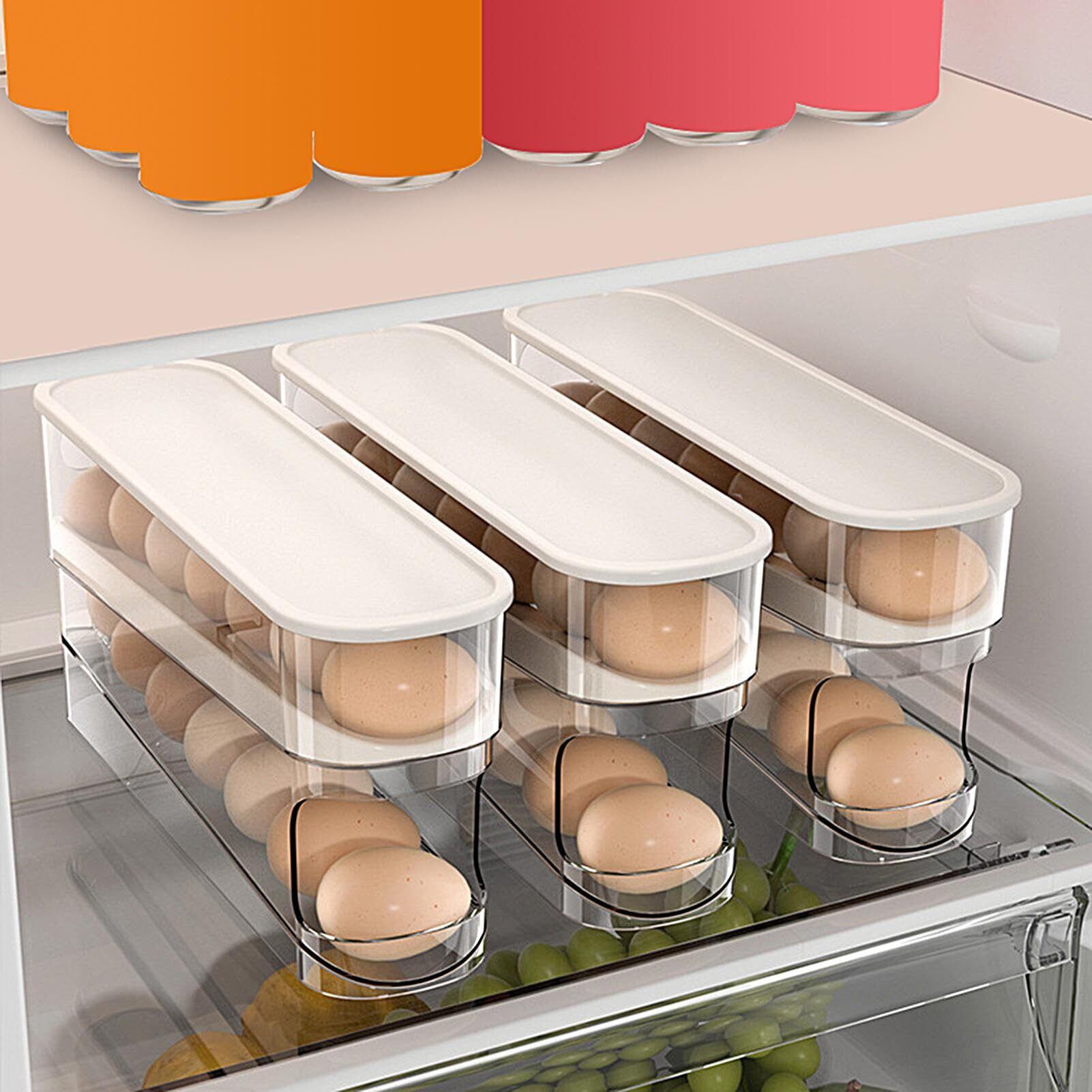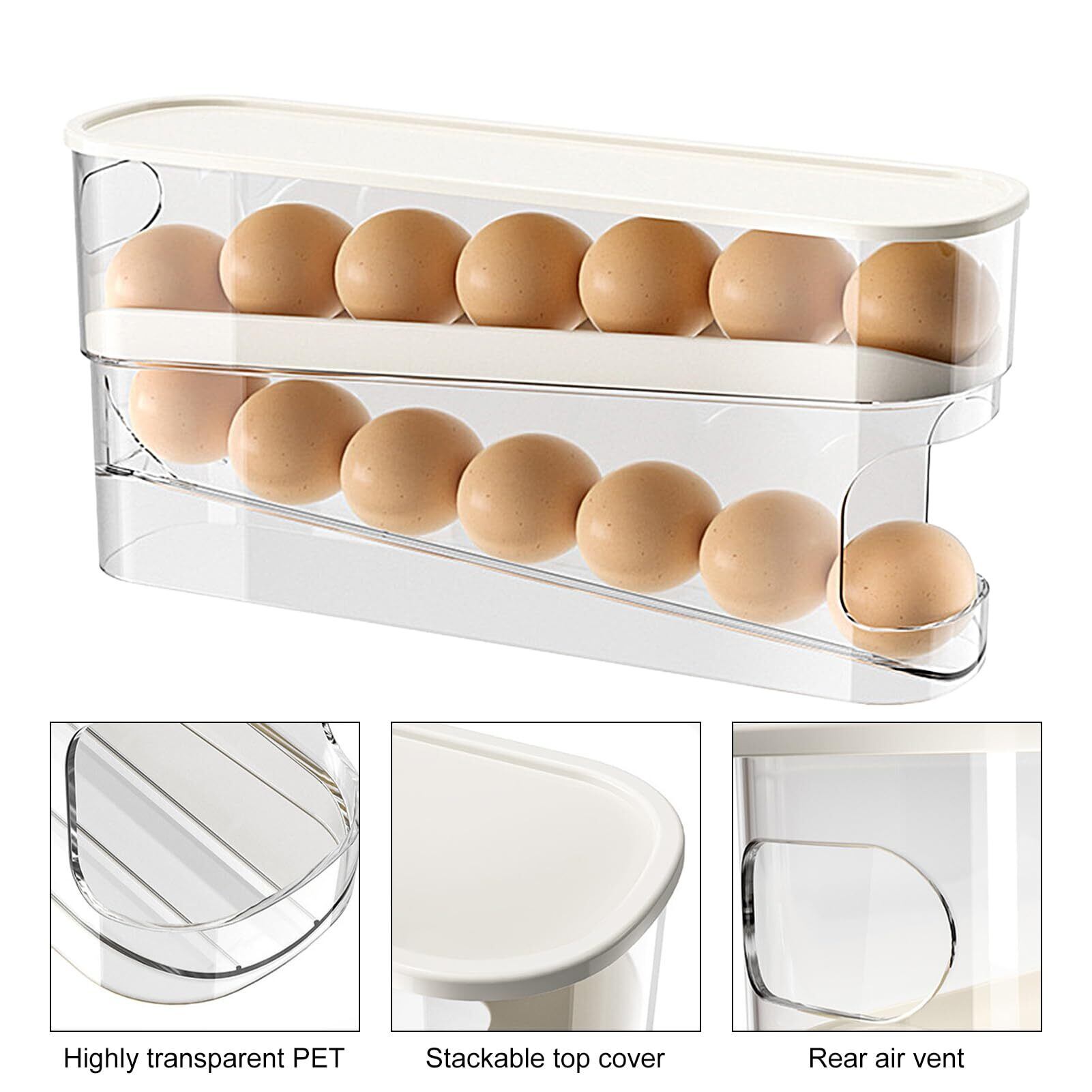 Humdcdy ローリングエッグディスペンサー 2段卵収納ラック ローリングエッグディスペンサー 冷蔵庫自動重力卵ボックス 卵12個収納 キッチンカウンタートップ 冷蔵庫ドア用