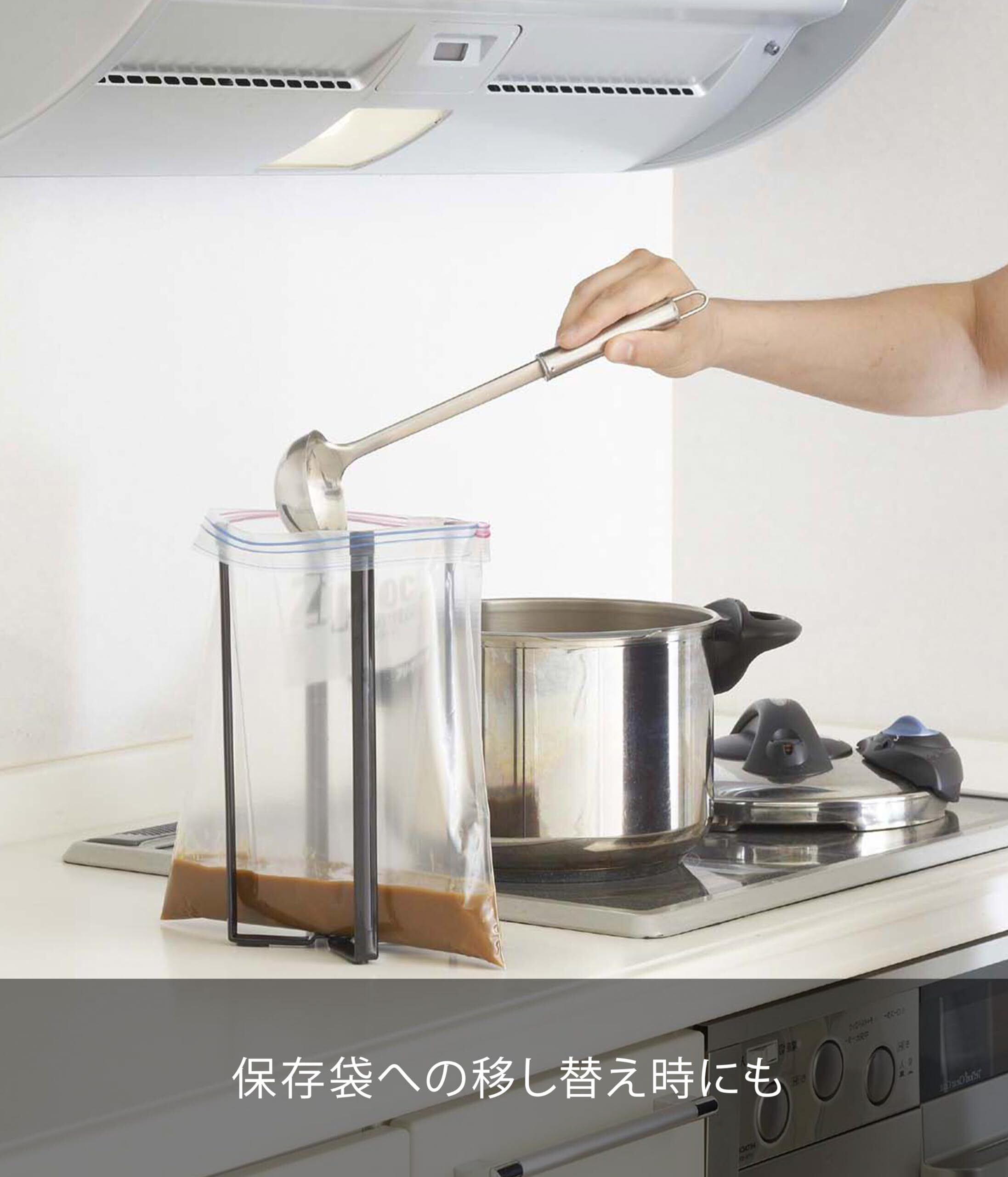 牛乳パックやペットボトルを乾かして何度もリサイクル!使わないときは折り畳んでスリムに収納。チャック付き保存袋、マグボトル、グラスなどを乾かすのに。ポリ袋を掛けて調理中にでるゴミ入れに。