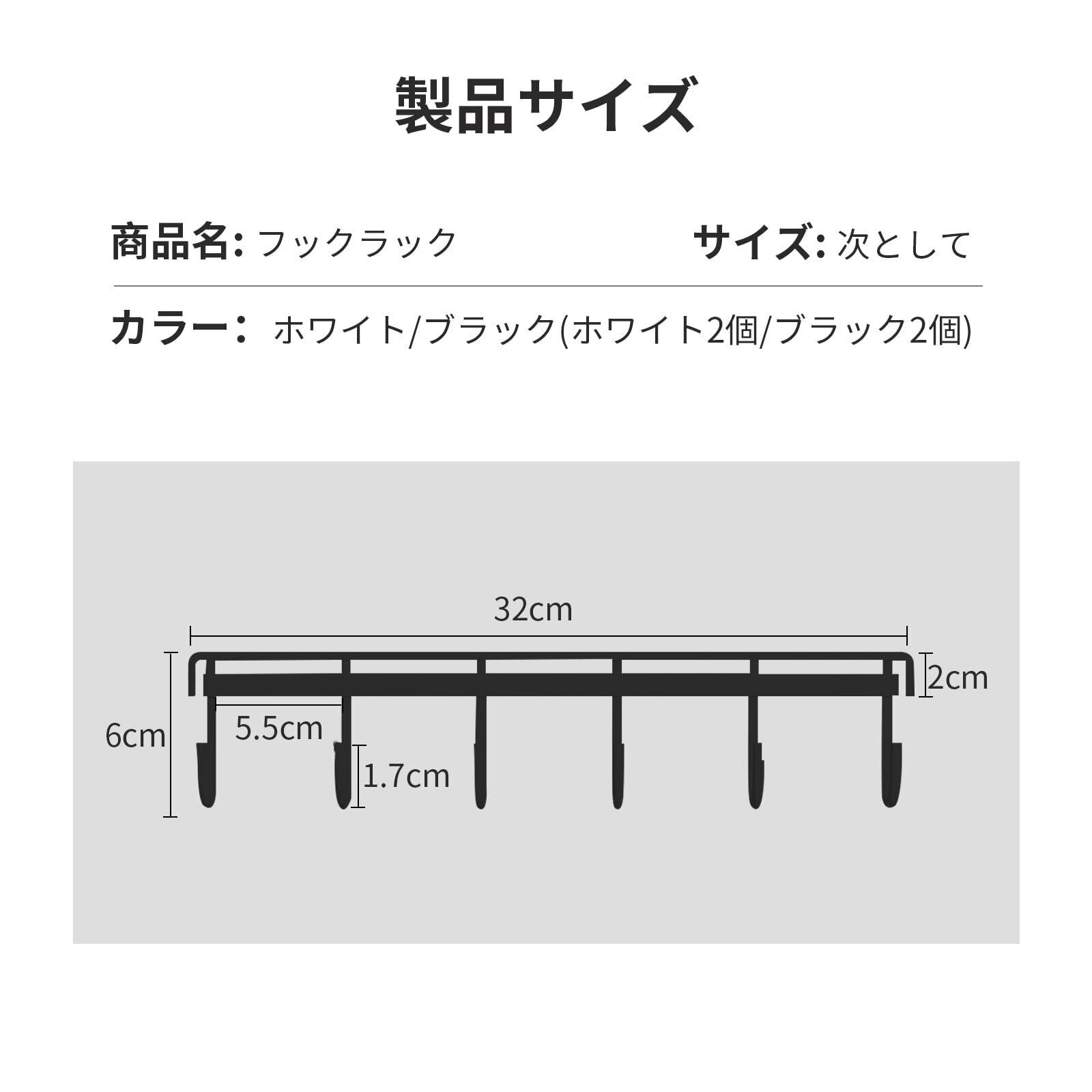サイズ:約幅32cm、材質:強力粘着テープ付きのプラスチック製、耐荷重:約2kg