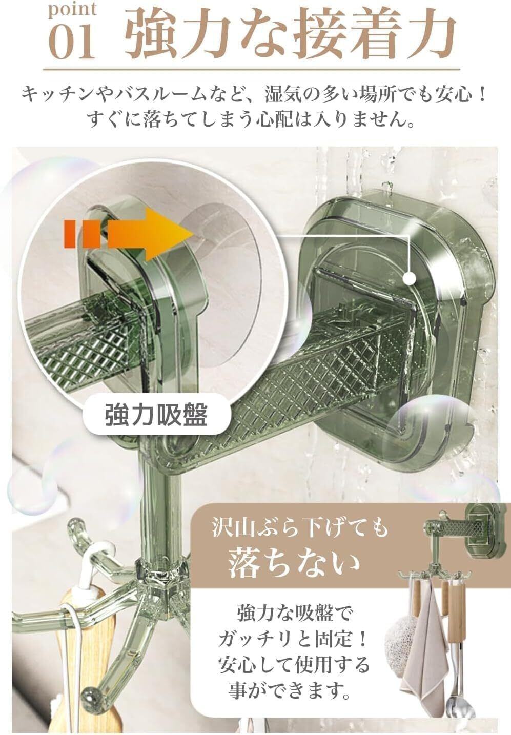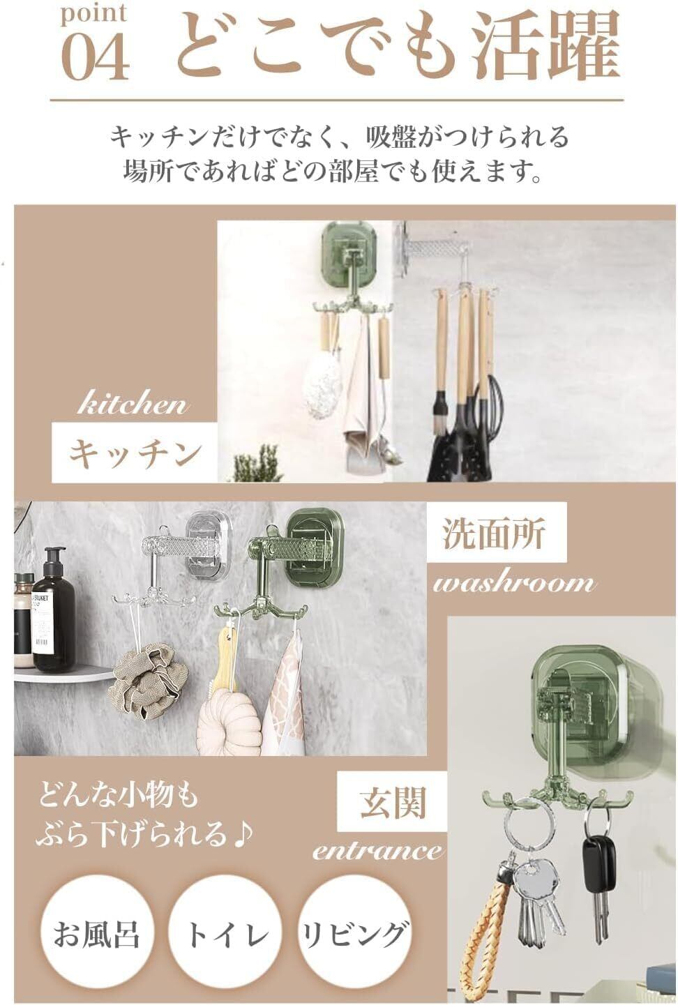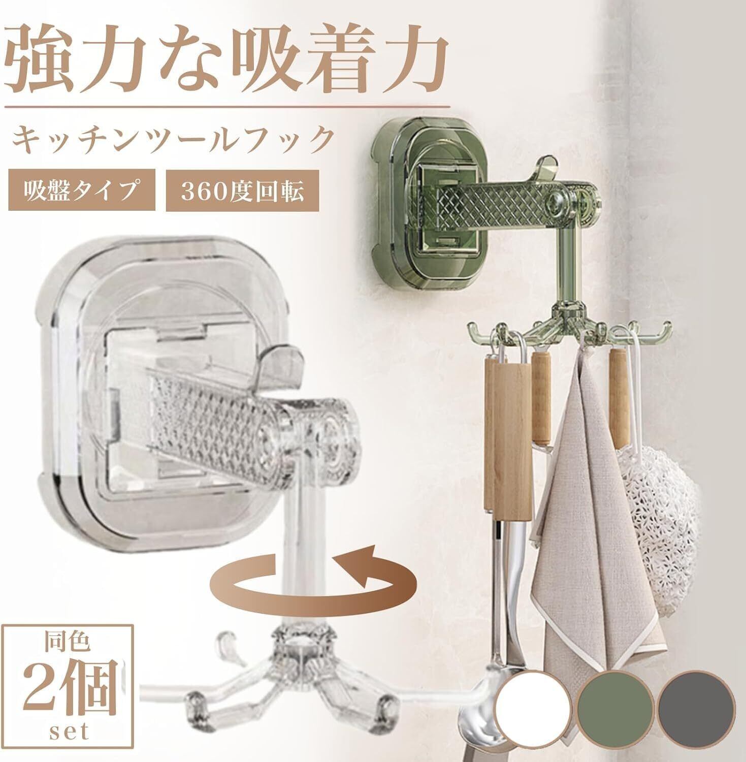 2個 キッチンツールフック 吸盤 6本爪回転フック 吸盤 パンチフリーキッチンツールフック 360°回転 強力粘着 軽量コンパクト 簡単設置 耐荷重 便利(ホワイト)