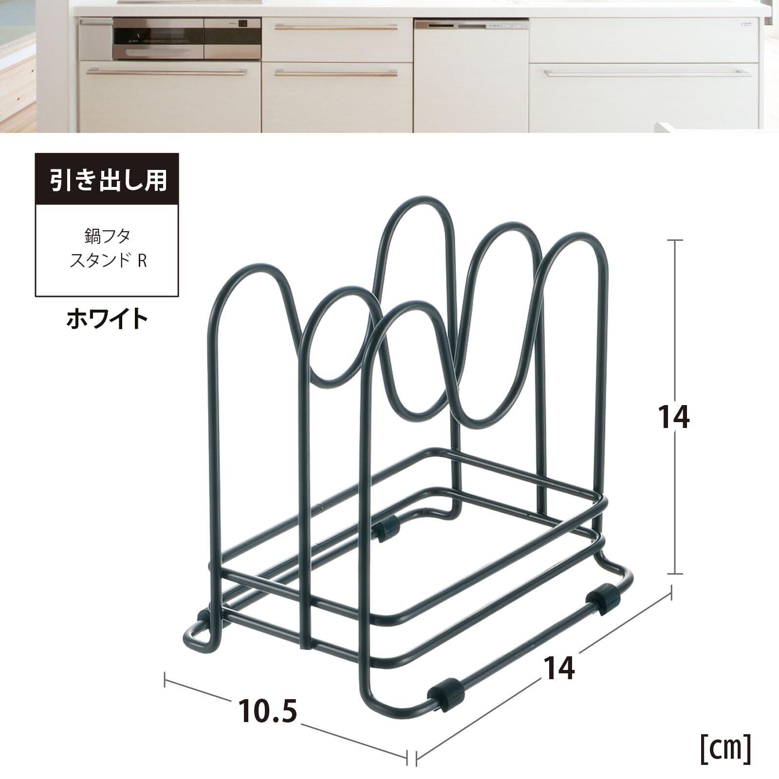便利な「リッチェル TOTONO引き出し用鍋ふたスタンドR」で、あなたのキッチンをさらに使いやすくしましょう!/特徴:シンプルで洗練されたデザインが魅力のこのスタンドは、鍋ふたを整理整頓して、美しいキッチンスペースを実現します。