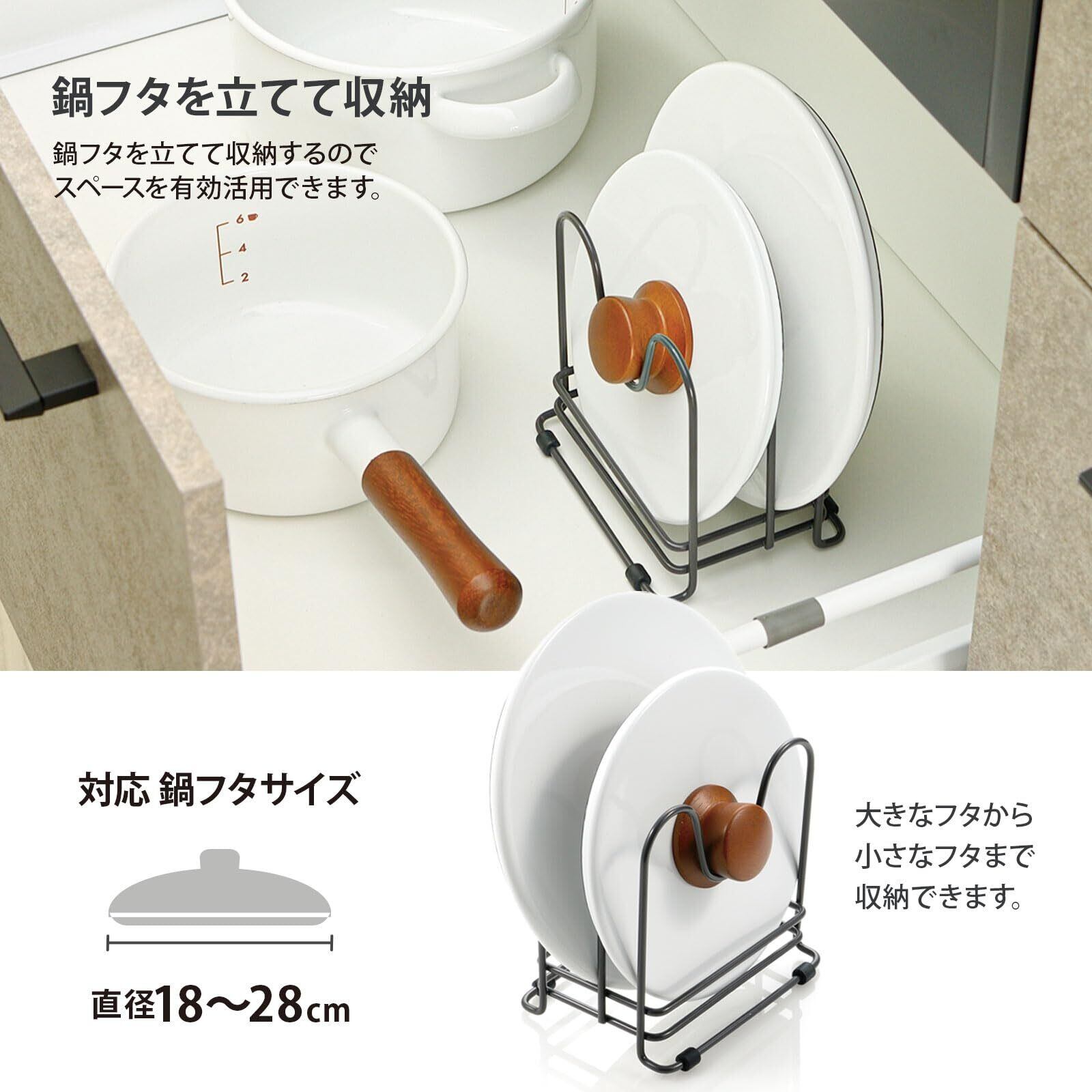 対応フタサイズは直径18~28cmで、小さなサイズのふたも収納することができます。
