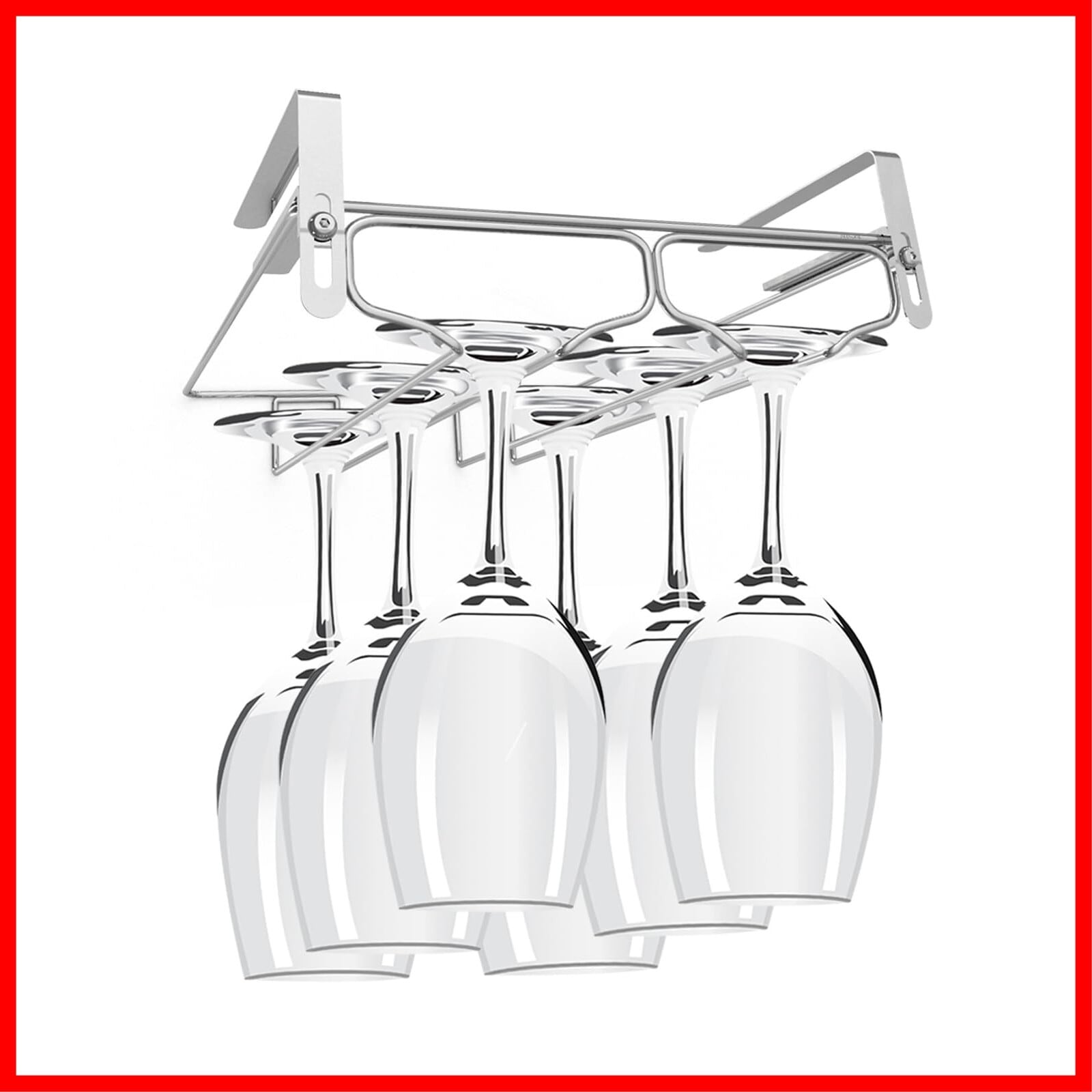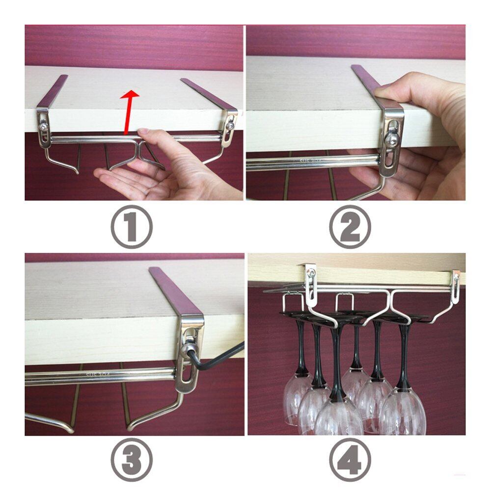 ワイングラスホルダー 吊り下げ ステンレス製 穴あけ不要 棚厚さによって調節可能 (2レーン)
