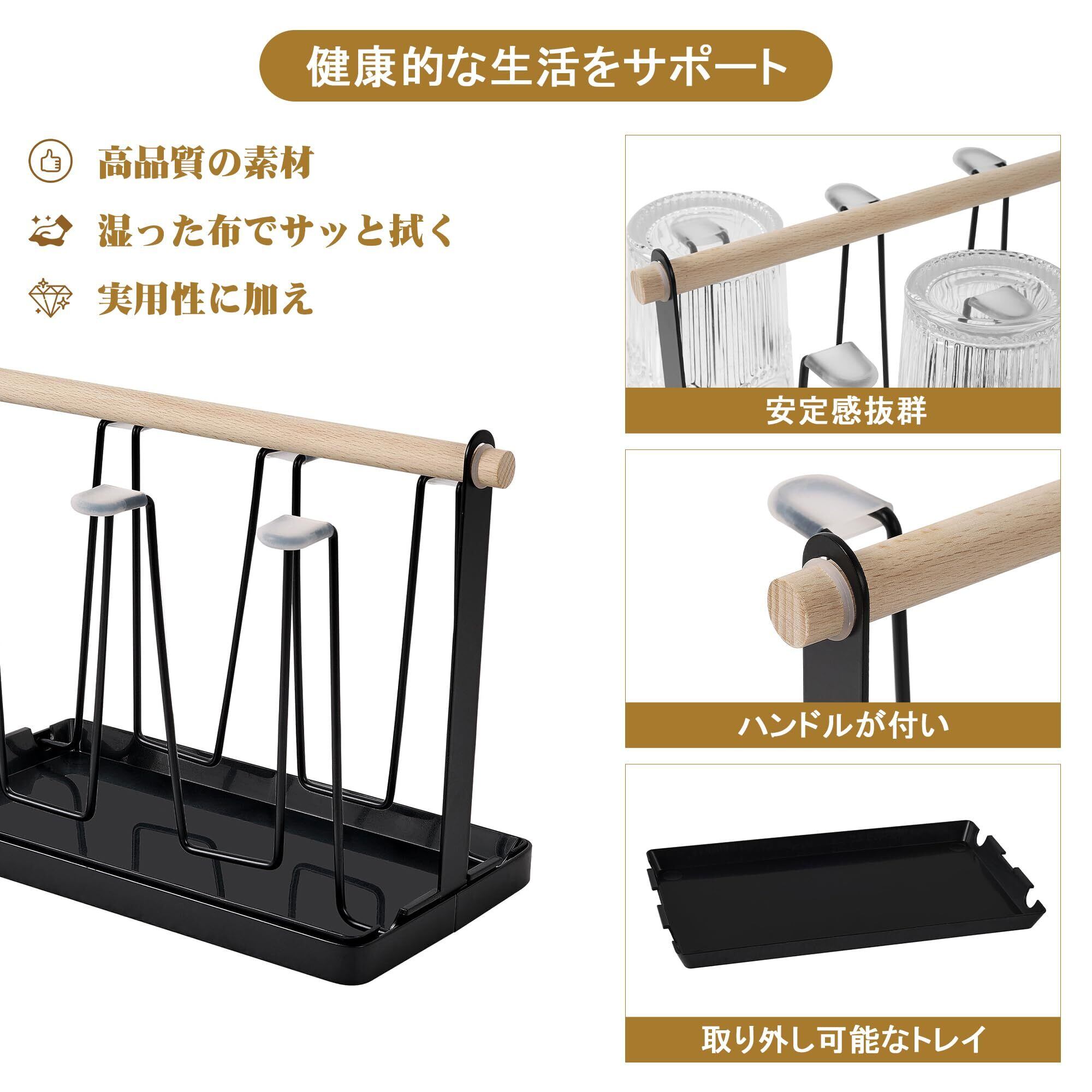【新着商品】VECELO グラススタンド 6個掛け シリコン滑り止め付 グラス置き コップ収納 コップホルダー 受け皿付き カップ収納ラック マグ おしゃれ スリム キッチン収納 26cm×13cm×19cm ブラック | Cherry Blossoms