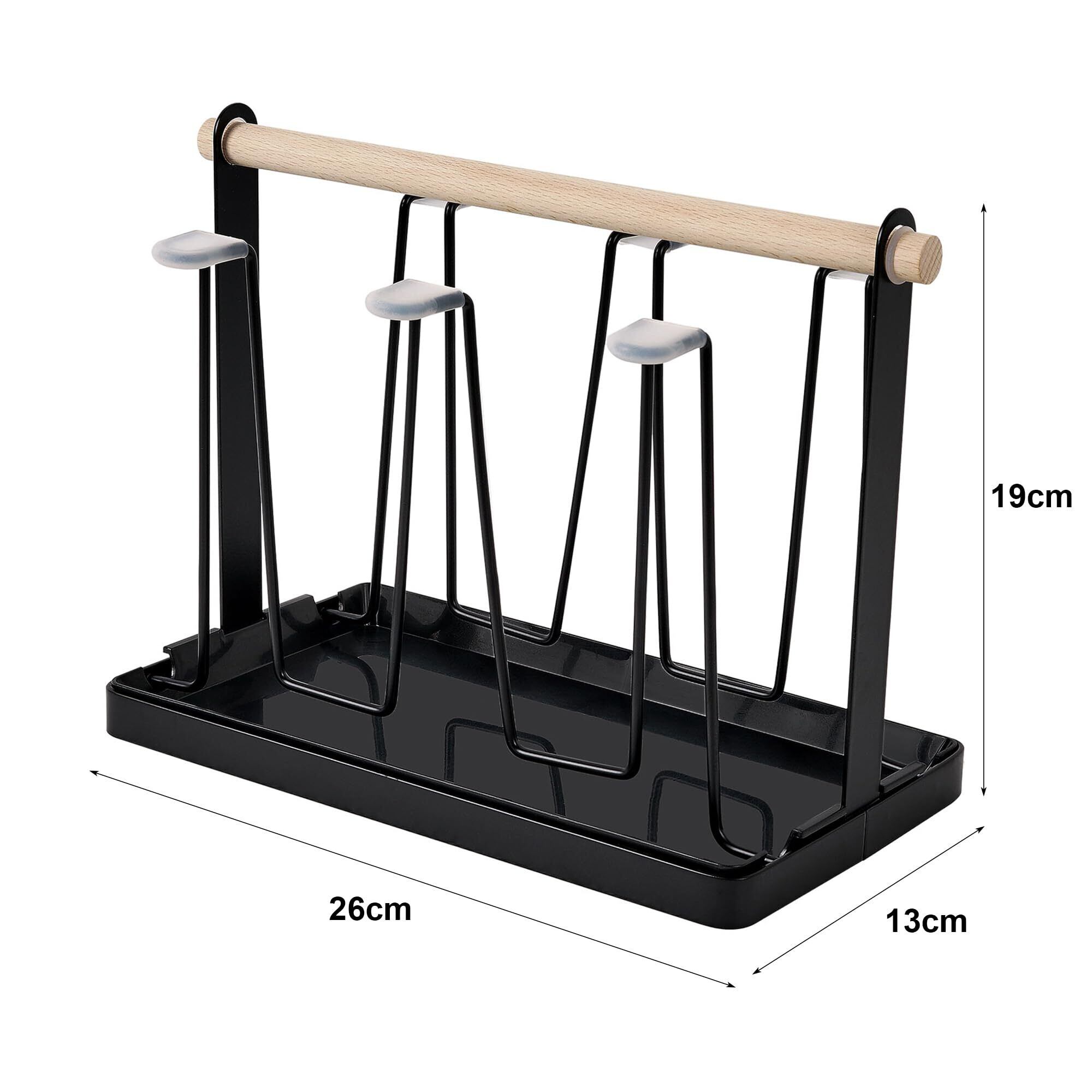 VECELO グラススタンド 6個掛け シリコン滑り止め付 グラス置き コップ収納 コップホルダー 受け皿付き カップ収納ラック マグ おしゃれ スリム キッチン収納 26cm×13cm×19cm ブラック