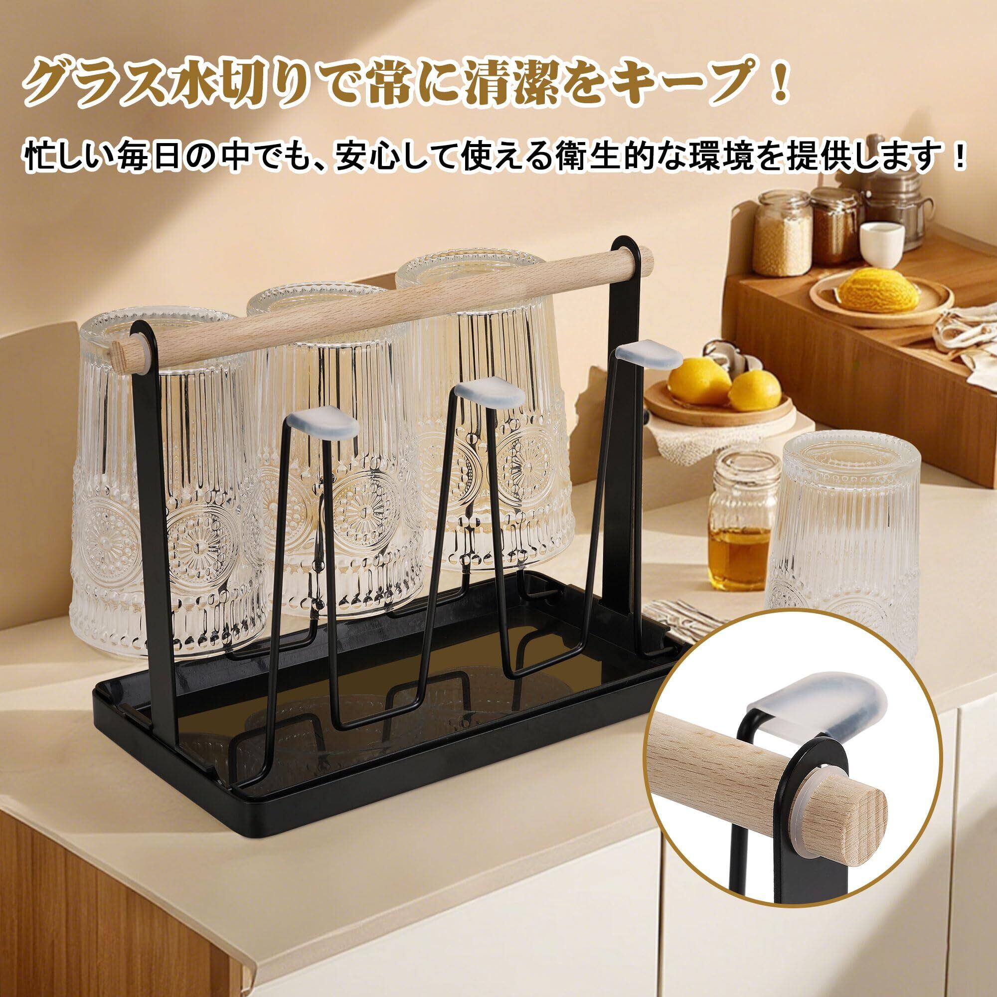 【省スペース&多機能】水切りだけでなく、カップスタンドとしても使用可能。卓上スペースを有効に活用し、キッチンやテーブルに6個のグラスが収納されます。上部には持ち手もついており、簡単に移動でき、必要な場所へ簡単に持ち運ぶことができます。