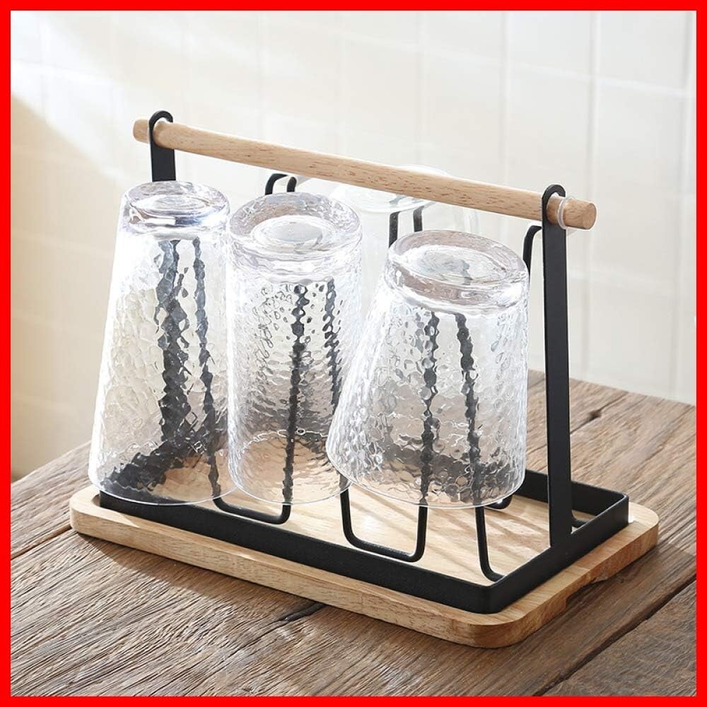 「グラススタンド」で、あなたのキッチンをスタイリッシュに美しく整理しましょう!/特徴:このコップスタンドは、最大6個のコップを吊り下げて収納できる便利なアイテムです。滑り止め付きの木製ハンドルで、安定した収納が可能なデザインです。