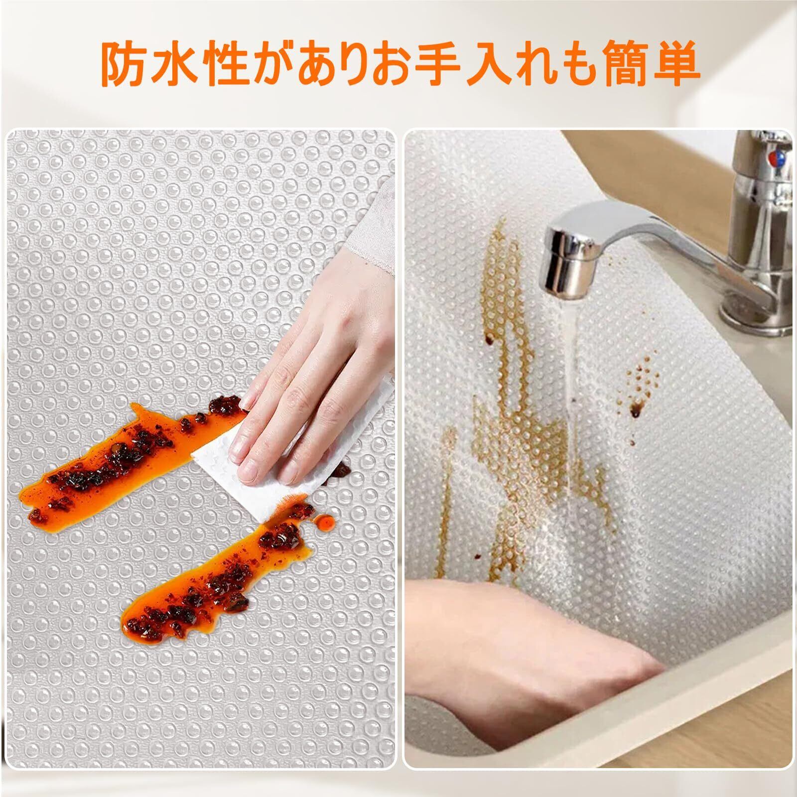 【お手入れ簡単】 食器棚シートは、お手入れが簡単で乾きが早いのが特徴です。汚れた場合は、水で洗い流すか、濡れた布やスポンジなどで拭き取り、乾かしてからまた使えます。