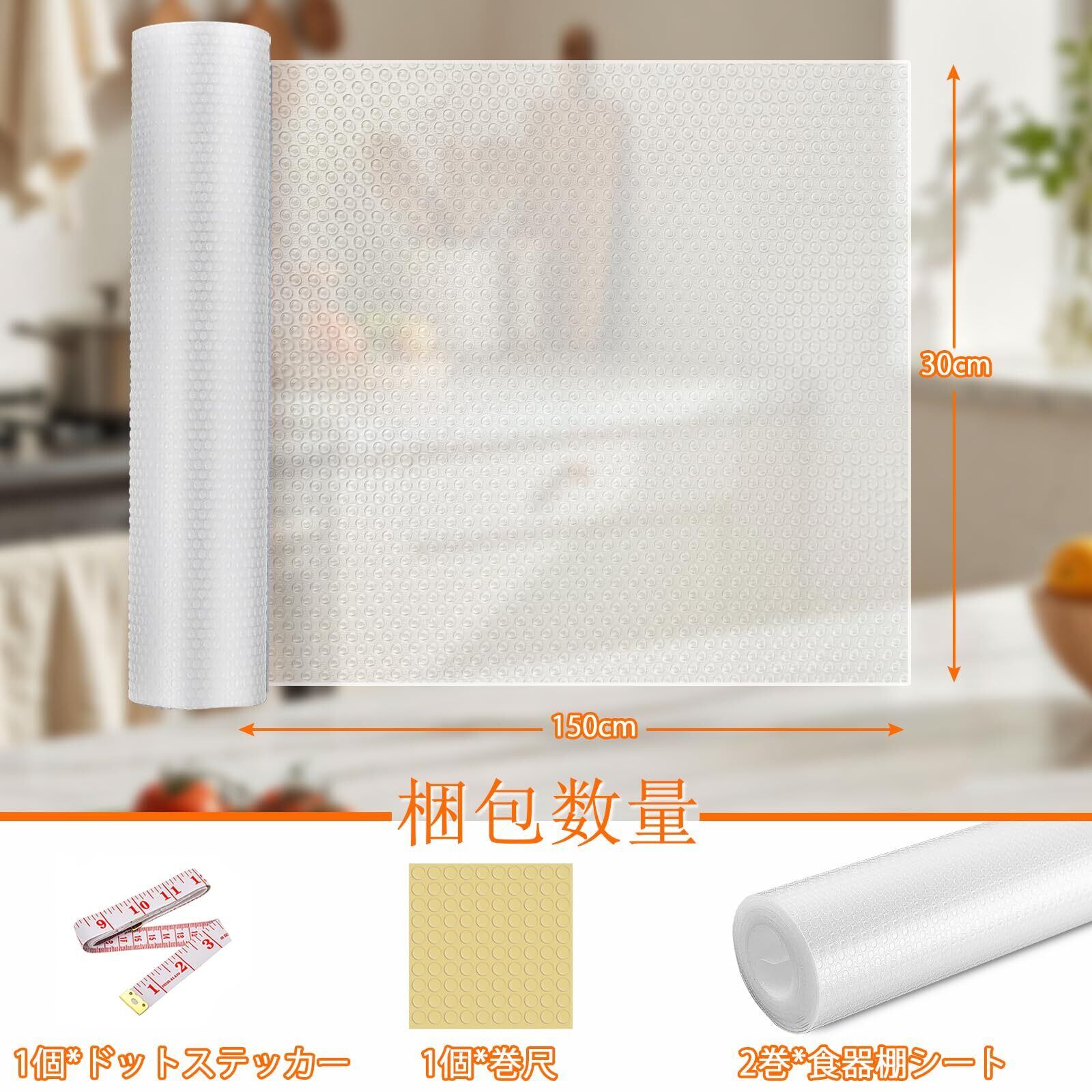 「Shackcom 食器棚シート」で、あなたのキッチンや収納スペースを保護し、美しく演出しましょう!/特徴:本商品は、30cm×150cmのサイズで、透明なEVA製素材を使用した2巻セットの食器棚シートです。