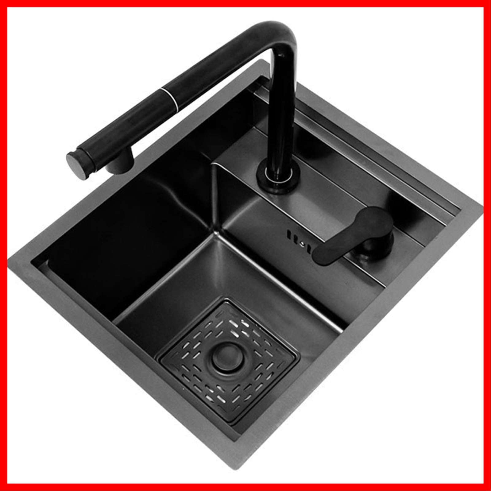 【在庫セール】隠しシンクブラックキッチンシンクRVシンクバーミニシンク昇降式蛇口蓋付きステンレスシンク付属品付き (Size : 40x54x22.5cm)