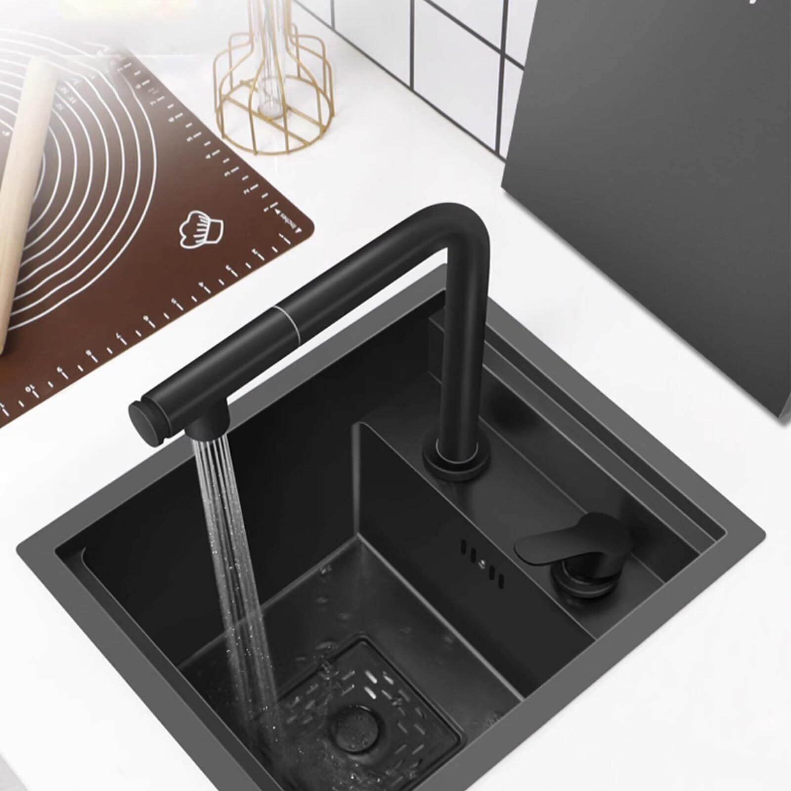隠しシンクブラックキッチンシンクRVシンクバーミニシンク昇降式蛇口蓋付きステンレスシンク付属品付き (Size : 40x54x22.5cm)