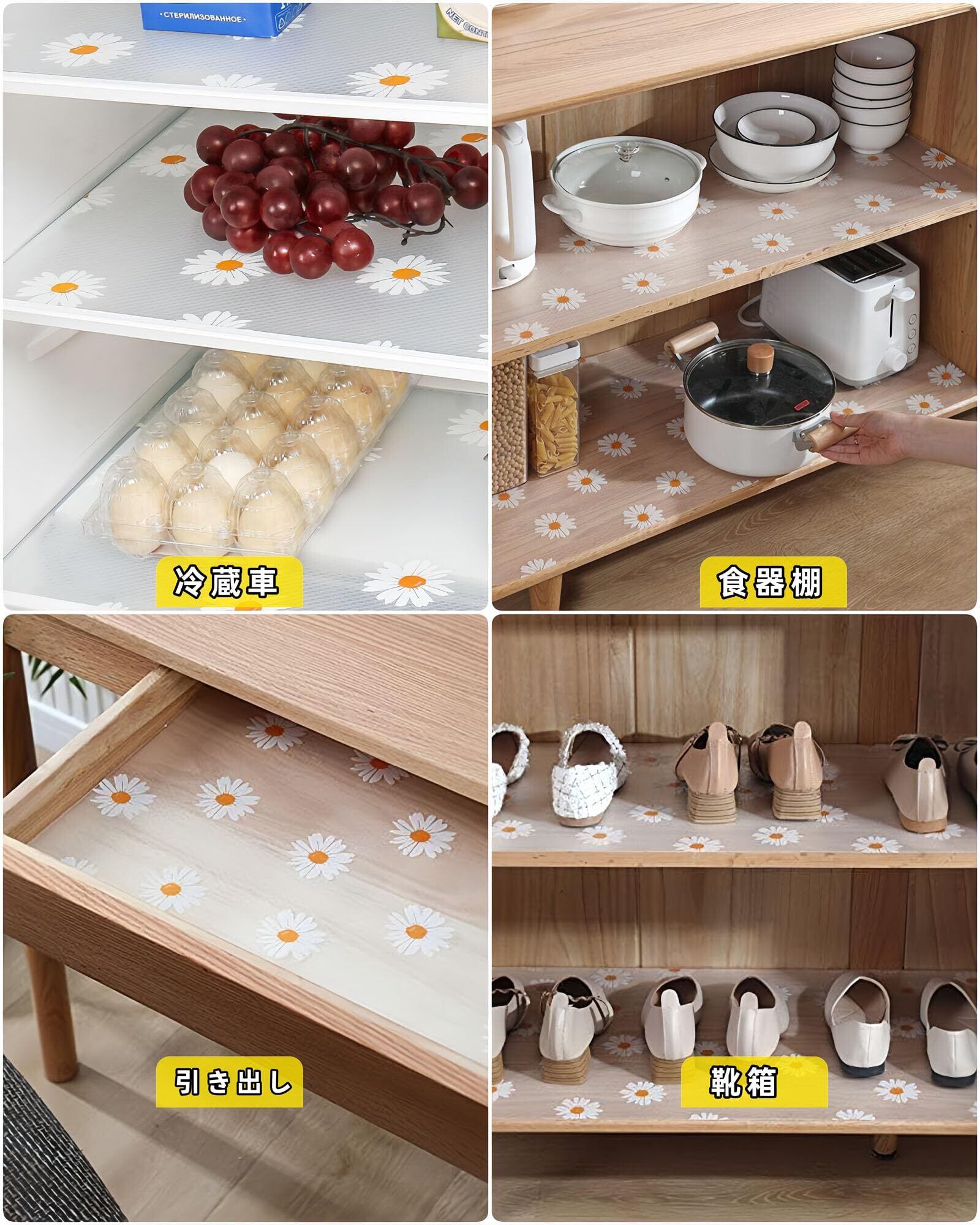 【幅広いシーンで活躍、インテリアを格上げ】下駄箱 シートは透明な花柄デザインで、どんなインテリアにも馴染み、元の美しさを損なわず空間を華やかに演出。キッチン、寝室、バスルーム、デスクなど幅広く使え、一人暮らしやご家族、ペットのいるご家庭にもおすすめ。収納がもっと楽しく、毎日の暮らしがもっと快適に!
