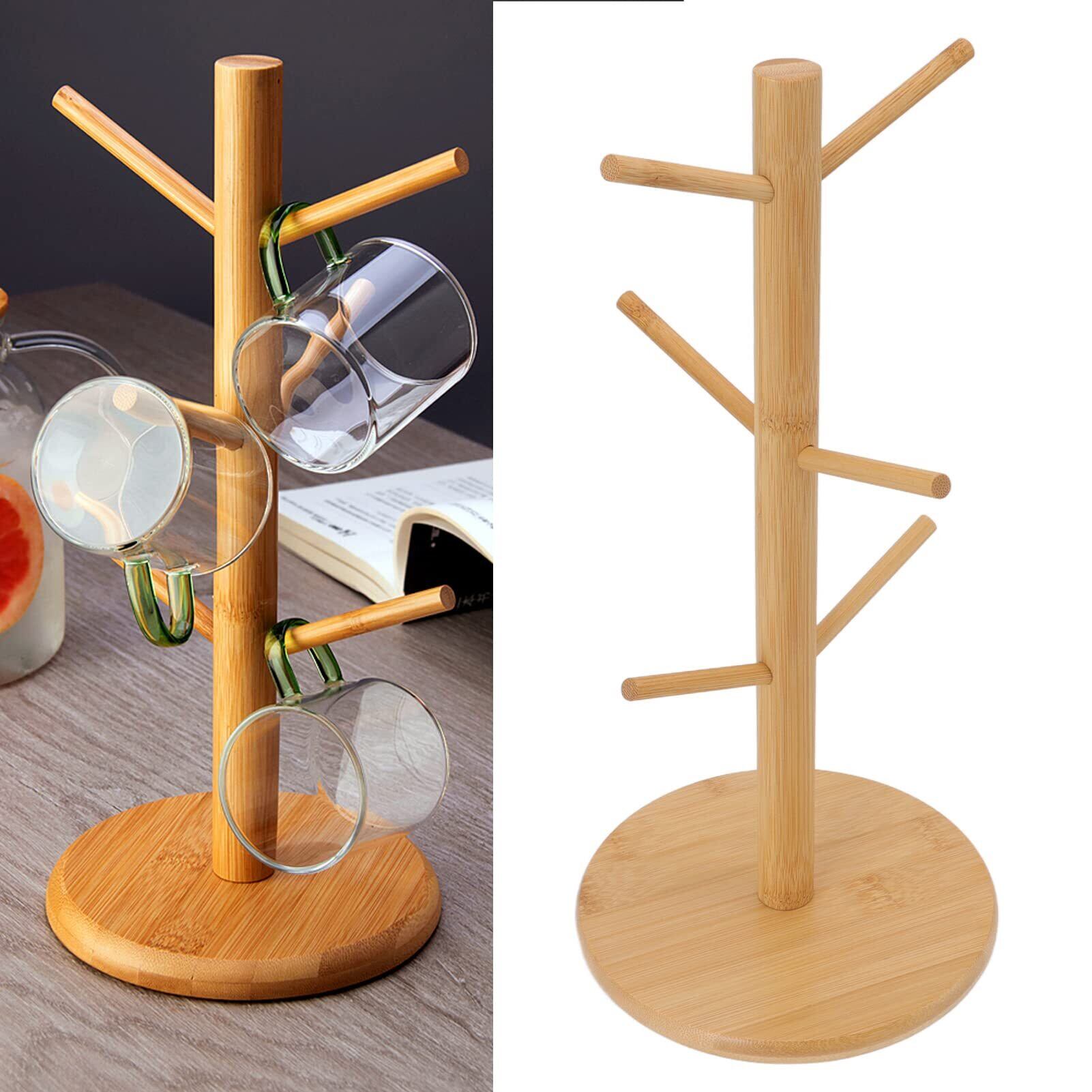 【特価商品】マグツリー、ポータブルコーヒーカップハンガースタンド、多目的ディスプレイツリー、省スペース竹製コーヒーマグツリーラック、収納ディスプレイ用フック6個付き
