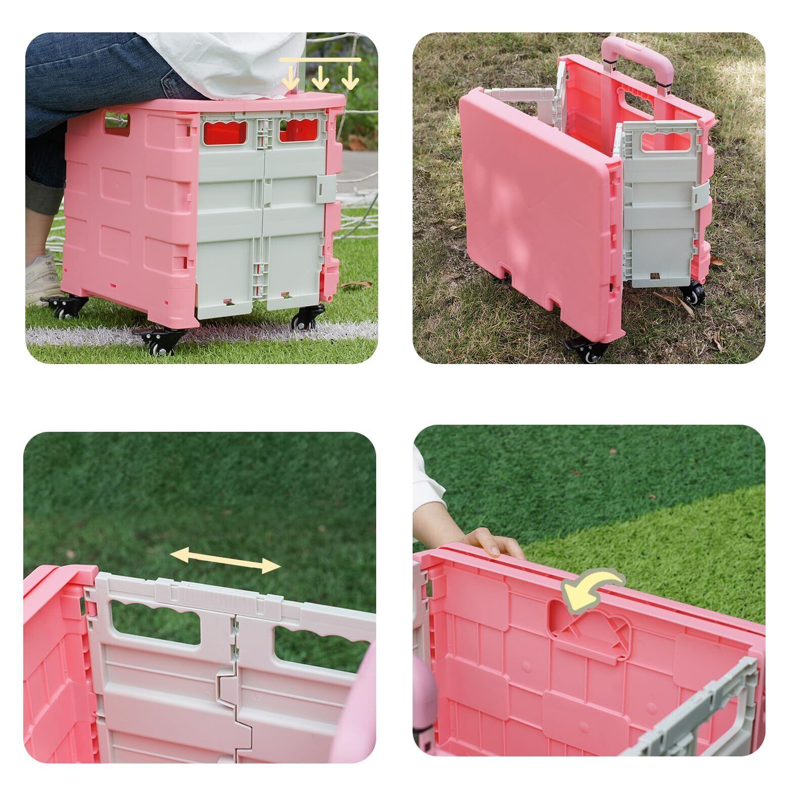 ZHJINGYU ショッピングカート 折りたたみキャリーカート コンテナキャリー 360°回転 4輪静音キャスター ストッパー付き 3段階調整ハンドル 耐荷重25KG 大容量50L (ピンク)