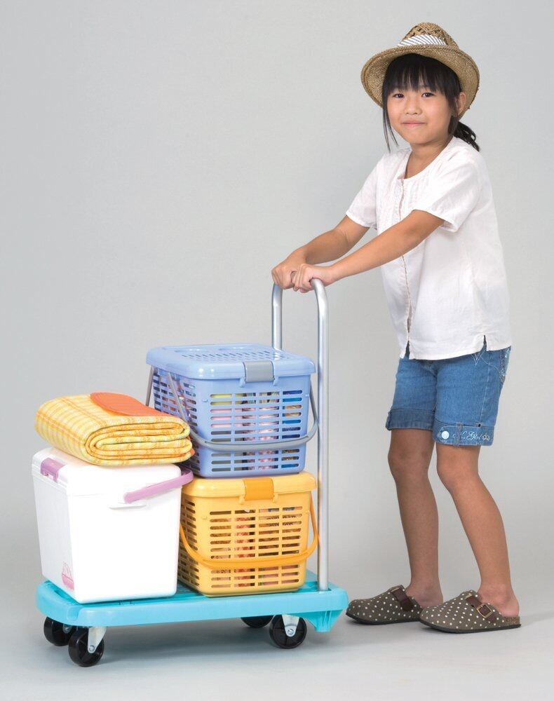 「パール金属 らくらく カート」で、家族のお買い物やお出かけをもっと楽にしましょう!/特徴:本商品は、軽量かつ耐久性に優れたファミリーカートです。爽やかなブルーのデザインで、誰でも使いやすく、日常生活にぴったりのアイテムです。