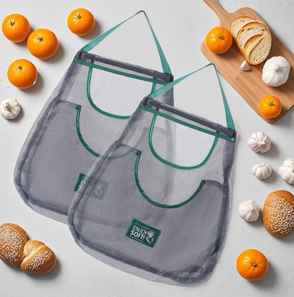 このネットバッグは吊り下げ設計で、冷蔵庫やキッチンのスペースを有効活用できます。風通しが良く、野菜や果物を鮮度を保ちながら収納できるため、安心してご使用いただけます。