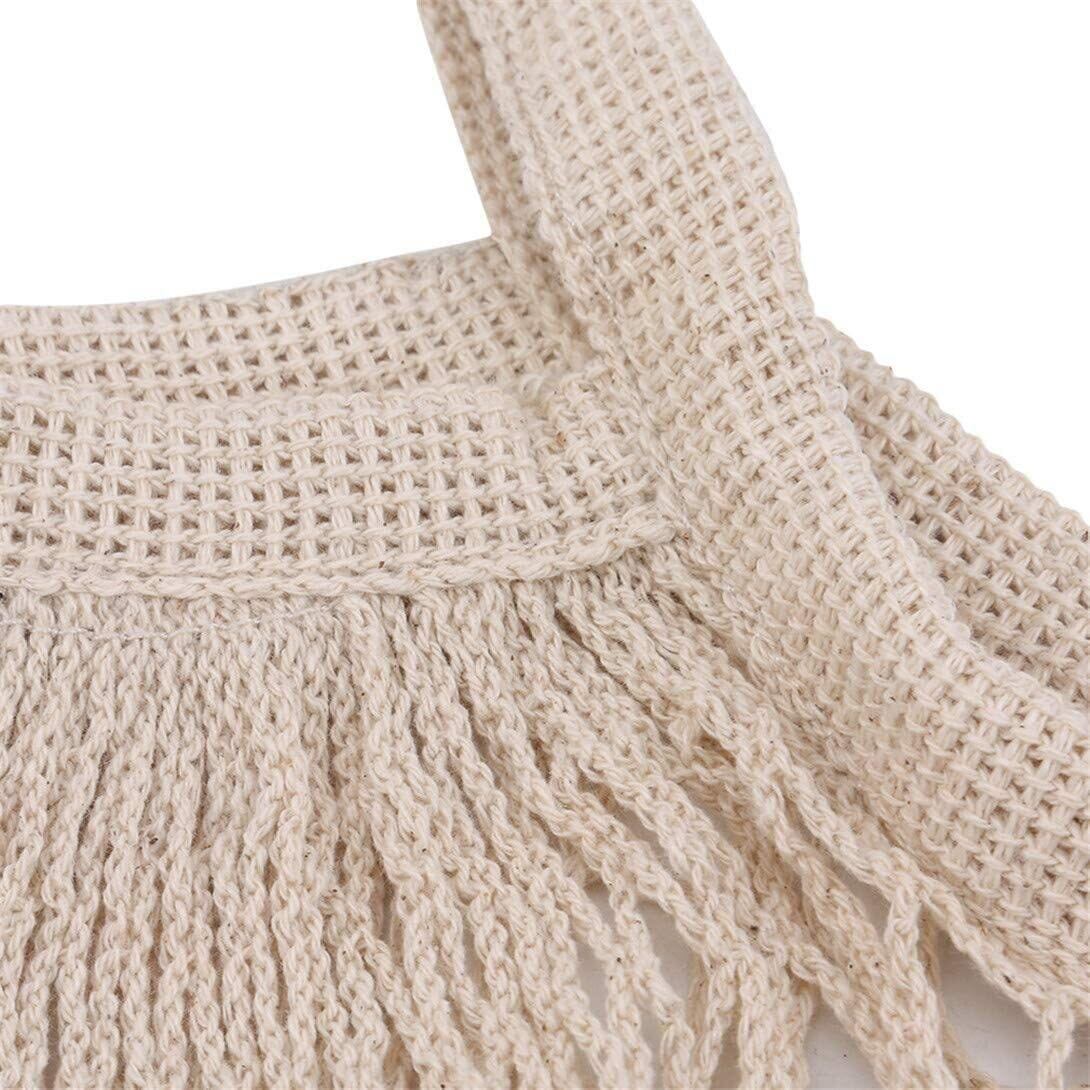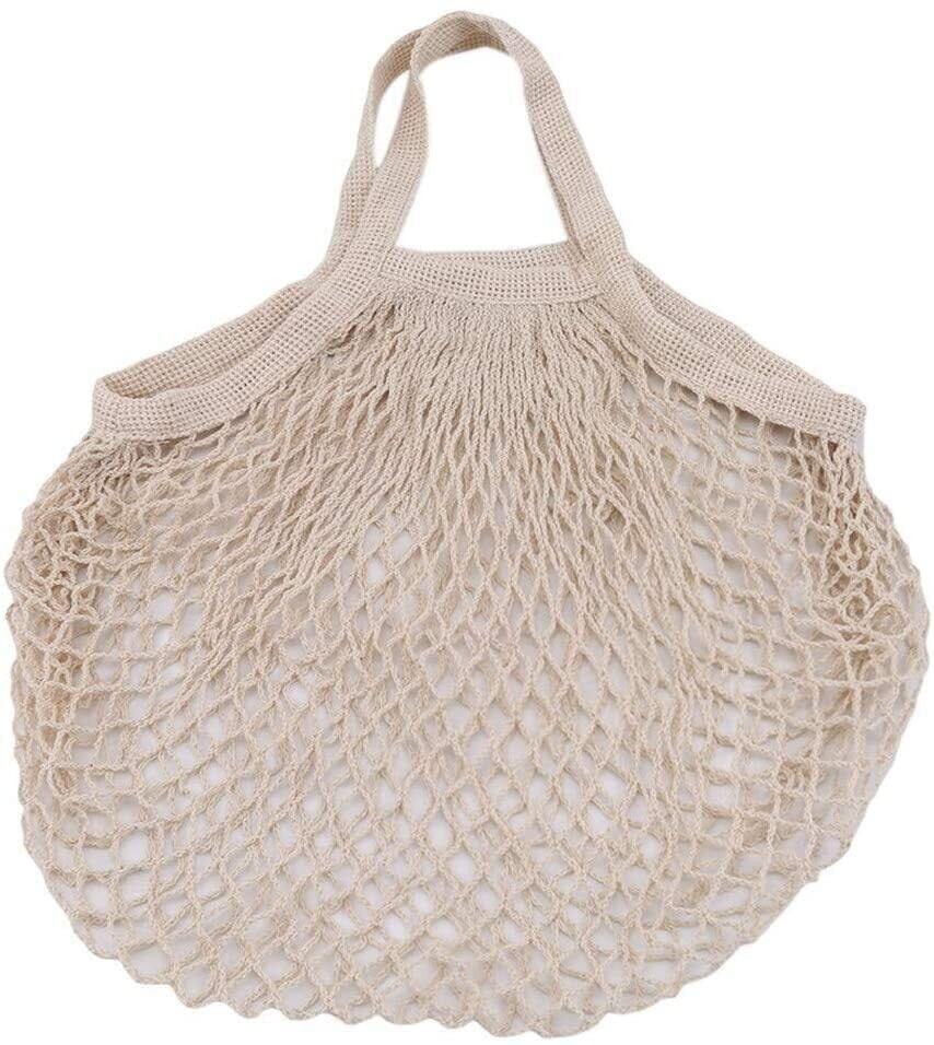 再利用可能な食料品メッシュバッグ、コットンメッシュストリングショッピングバッグ、果物野菜の保管用の長いハンドル付きのポータブルで洗えるトートハンドバッグ、外出旅行実用的で魅力的