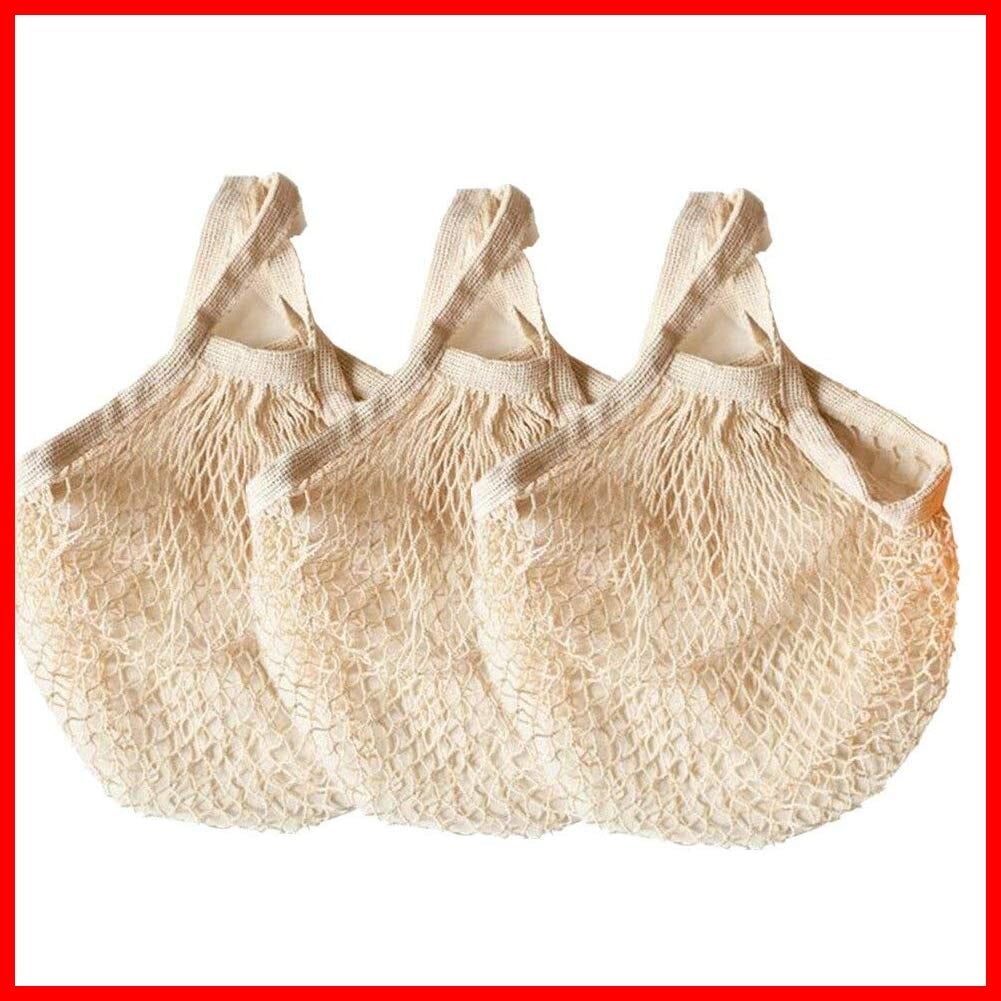 Ahyuan Ecology 再利用可能コットンメッシュ食料品バッグ コットンストリングバッグ ネットショッピングメッシュバッグ 3個パック (ベージュ)