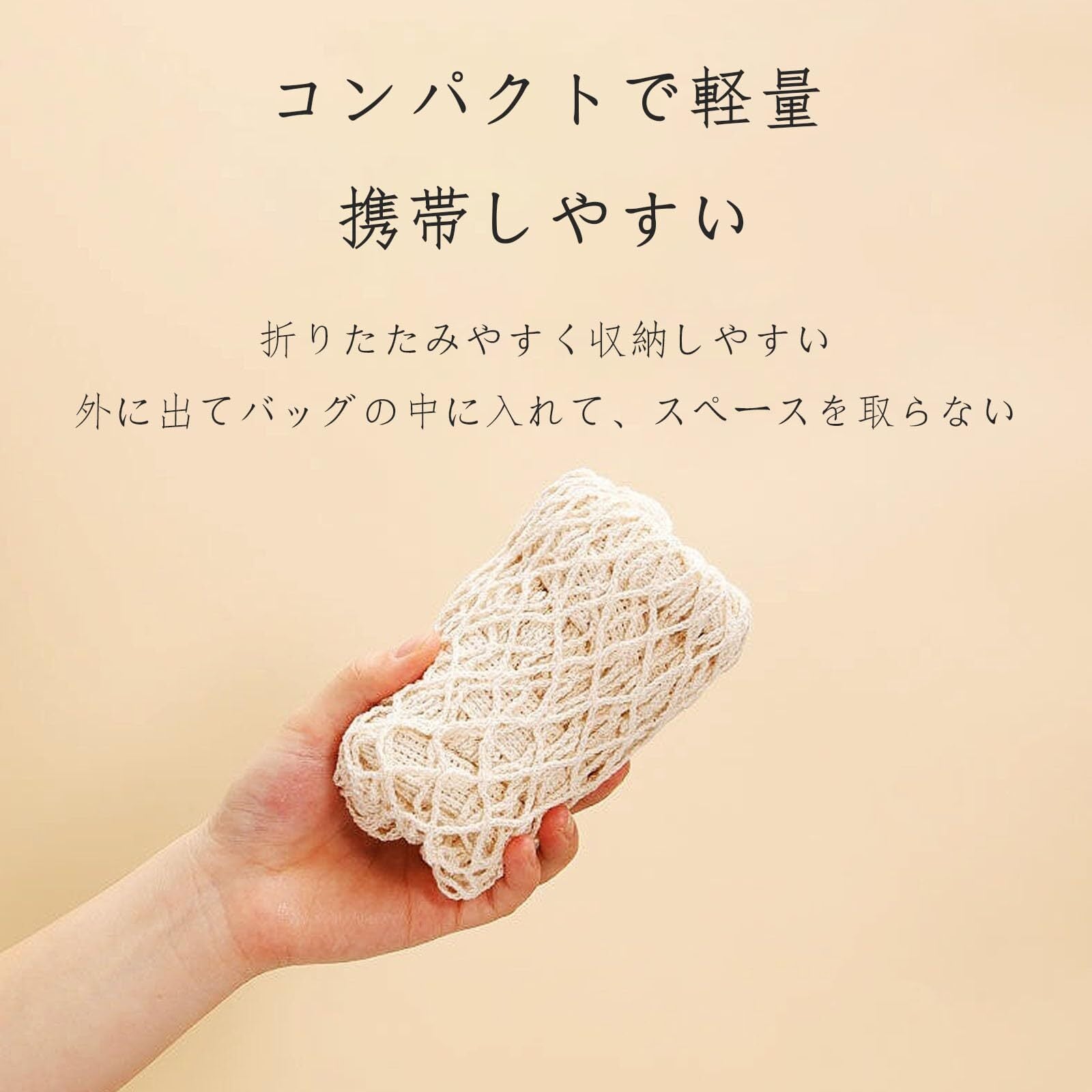 このポータブルなメッシュバッグは、ショッピングや旅行、ジムやプールなど様々なシーンで大活躍します。持ち運びが簡単で、必要なものをすぐに取り出せる機能性が嬉しいポイントです。温泉やビーチ、アウトドアにもぴったり!