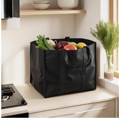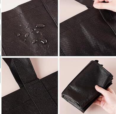 Jnjnyng 再利用可能なショッピングハンドバッグ、強化底付きの頑丈な折りたたみ式グローサリーバッグ、折りたたみ式ハンドバッグ収納バッグ(黒)