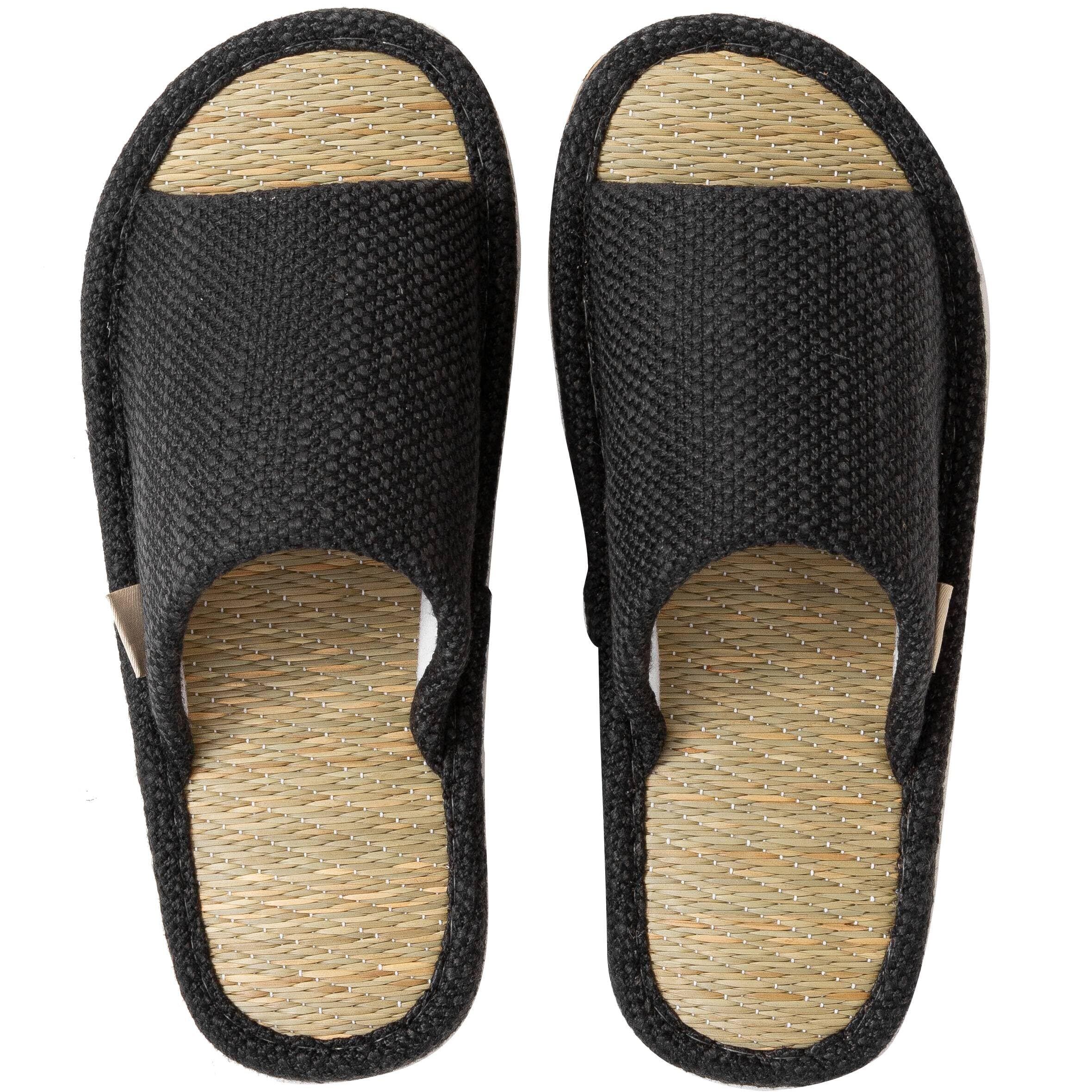 [mianshe] スリッパ い草 ルームシューズ 春夏 室内 リネン 亜麻 男女兼用 涼しい 滑り止め むれない 室内はき 軽量 前開き 無地 井草