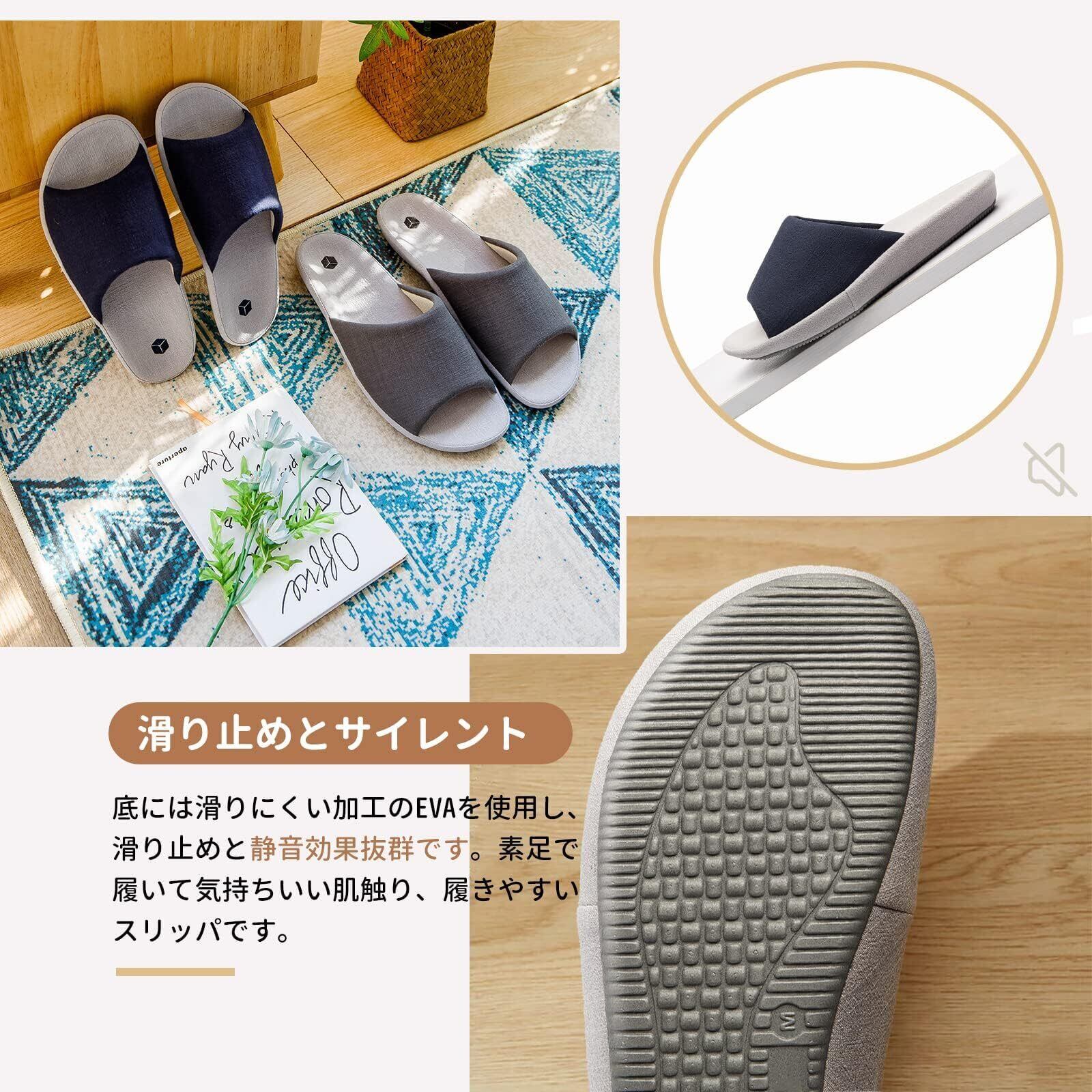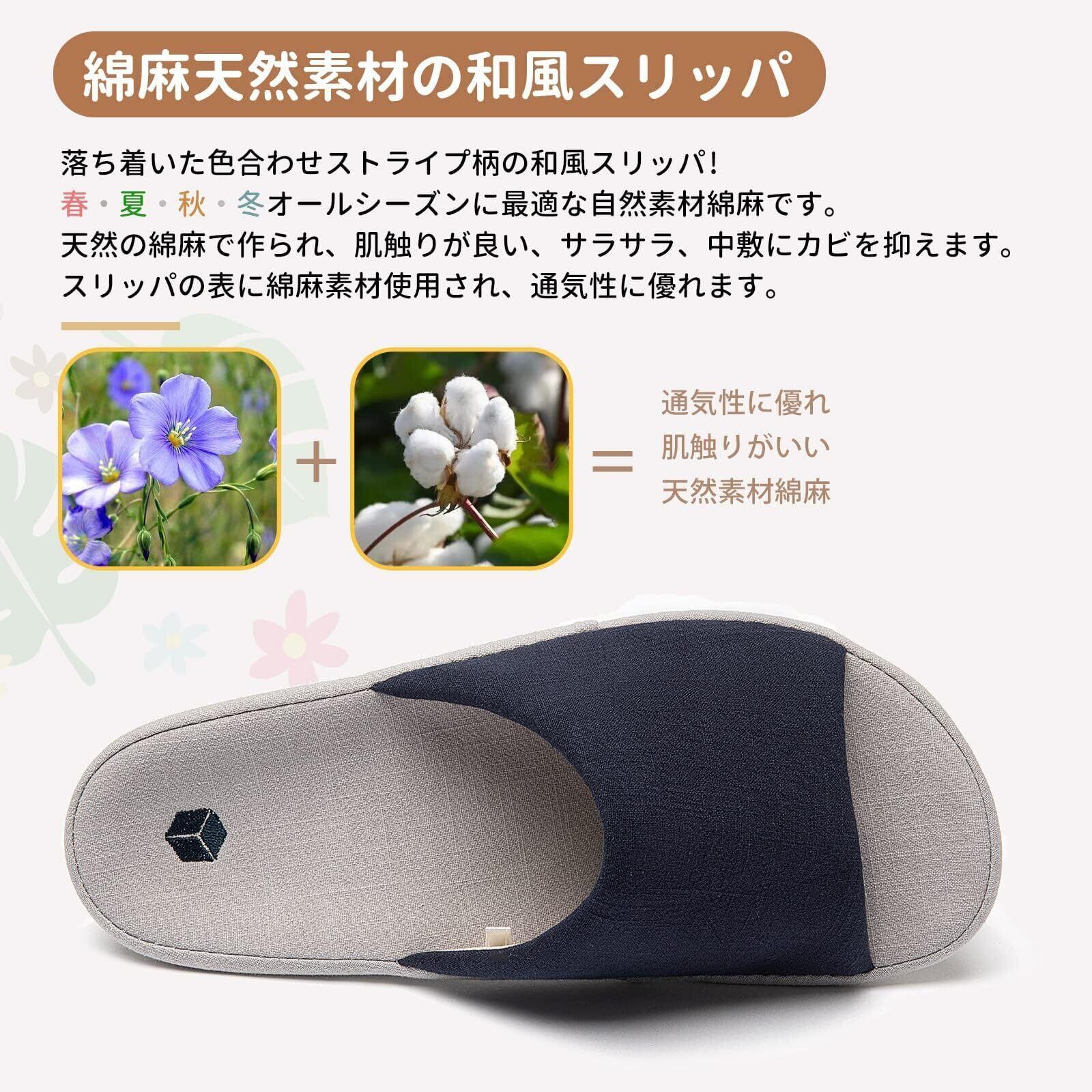 [SOARHOPE] ルームシューズ 亜麻 スリッパ メンズ レディース 室内履き 和風 無地 春夏用 来客用 部屋用 軽量 オシャレ 通気 シンプル 素足で履く 洗濯可