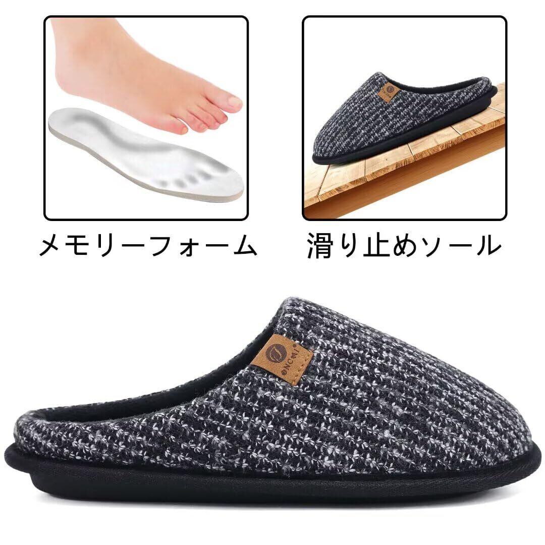 「[ONCAI] スリッパ メンズ ルームシューズ」で、心地よい室内生活をお楽しみください!/特徴:このスリッパは、クッション性に優れたアーチサポート設計で、足元をしっかり支え、長時間の使用でも疲れにくい仕様です。また、温かい素材を使用しているため、寒い季節でも冷えを気にせず快適に過ごせます。
