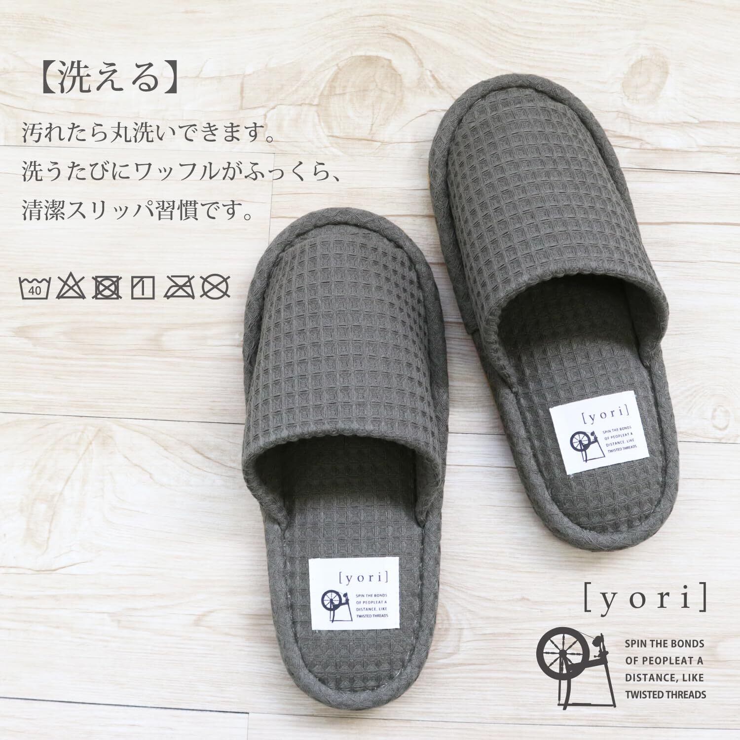 yoriコットンワッフルの特性により、足を包み込むようなやわらかさがあります。軽やかでリラックス感を味わえるので、自宅でのリラックスタイムはもちろん、軽いお出かけにもぴったりのアイテムです。