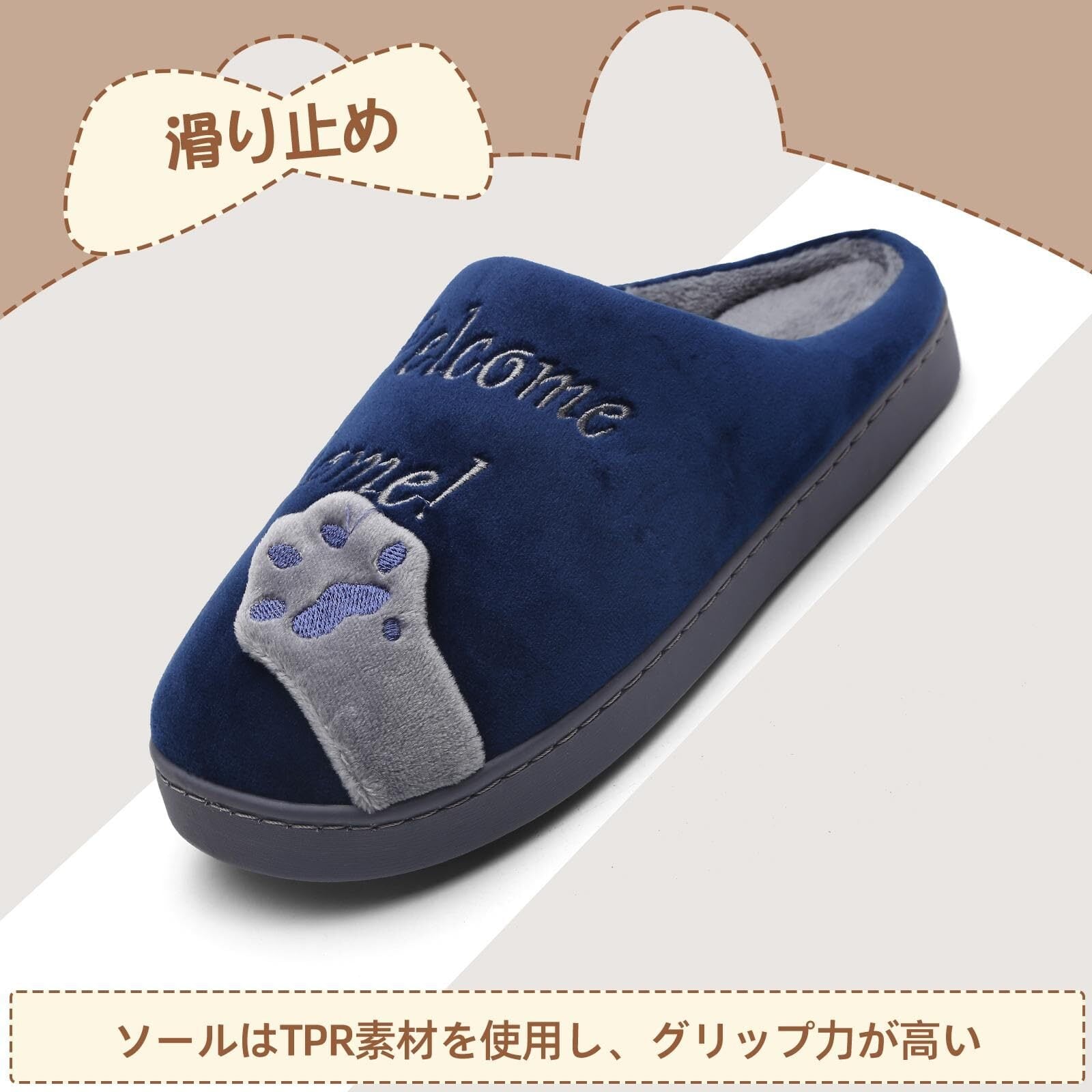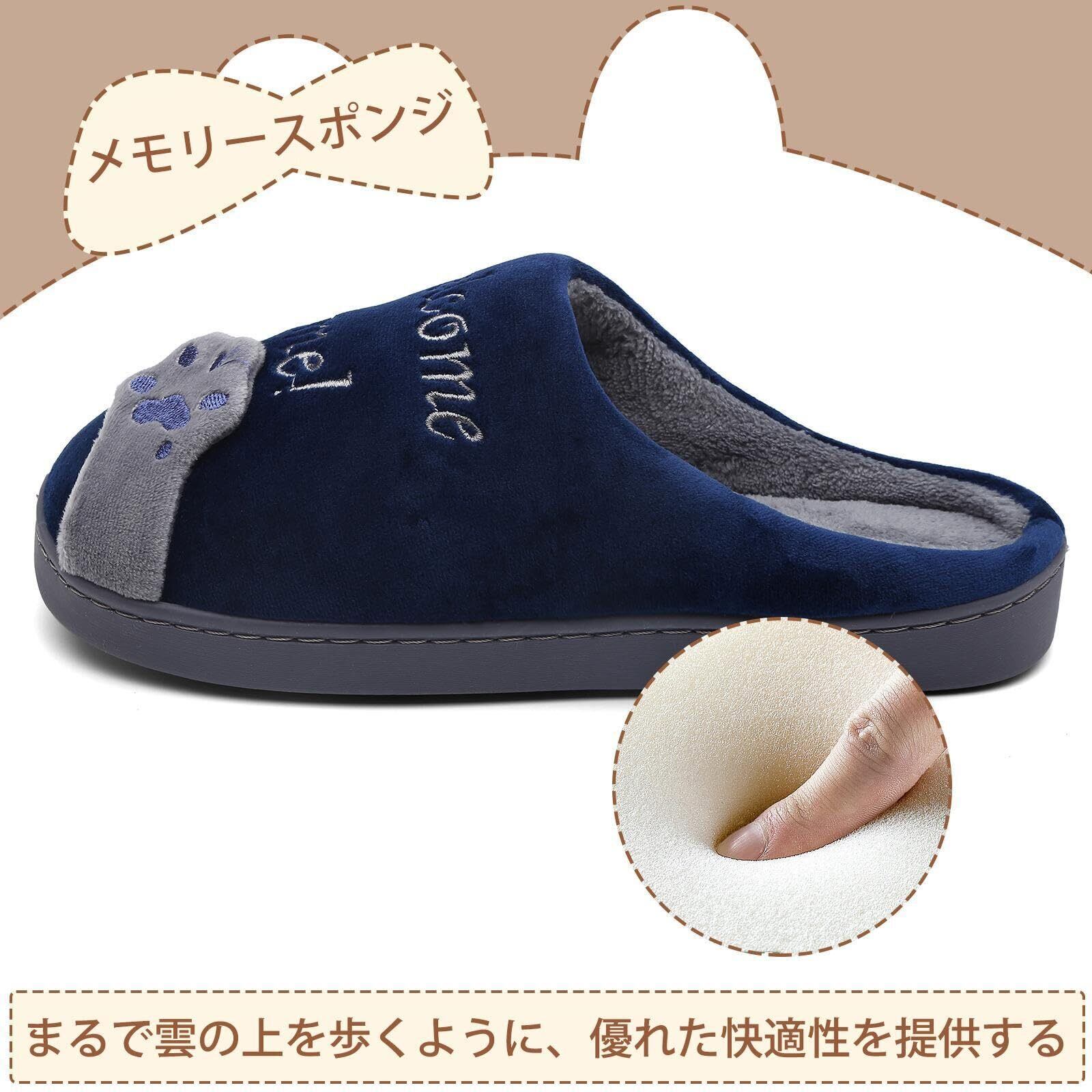保暖: 足を優しく包まれて暖かいです。普通のスリッパより底が厚めなので、床の冷えも軽減されます
