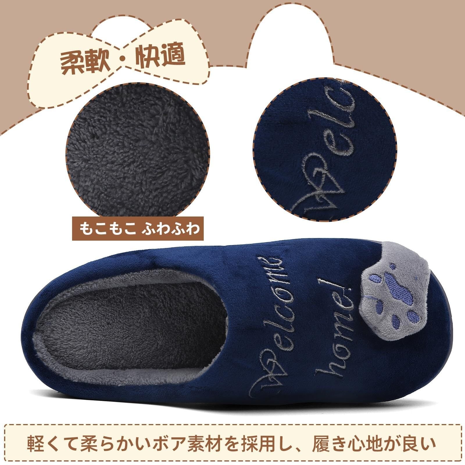 柔軟・快適: 裏地は綿素材で、足で履くと肌触りもフカフカでとっても暖かくて気持ちいいです