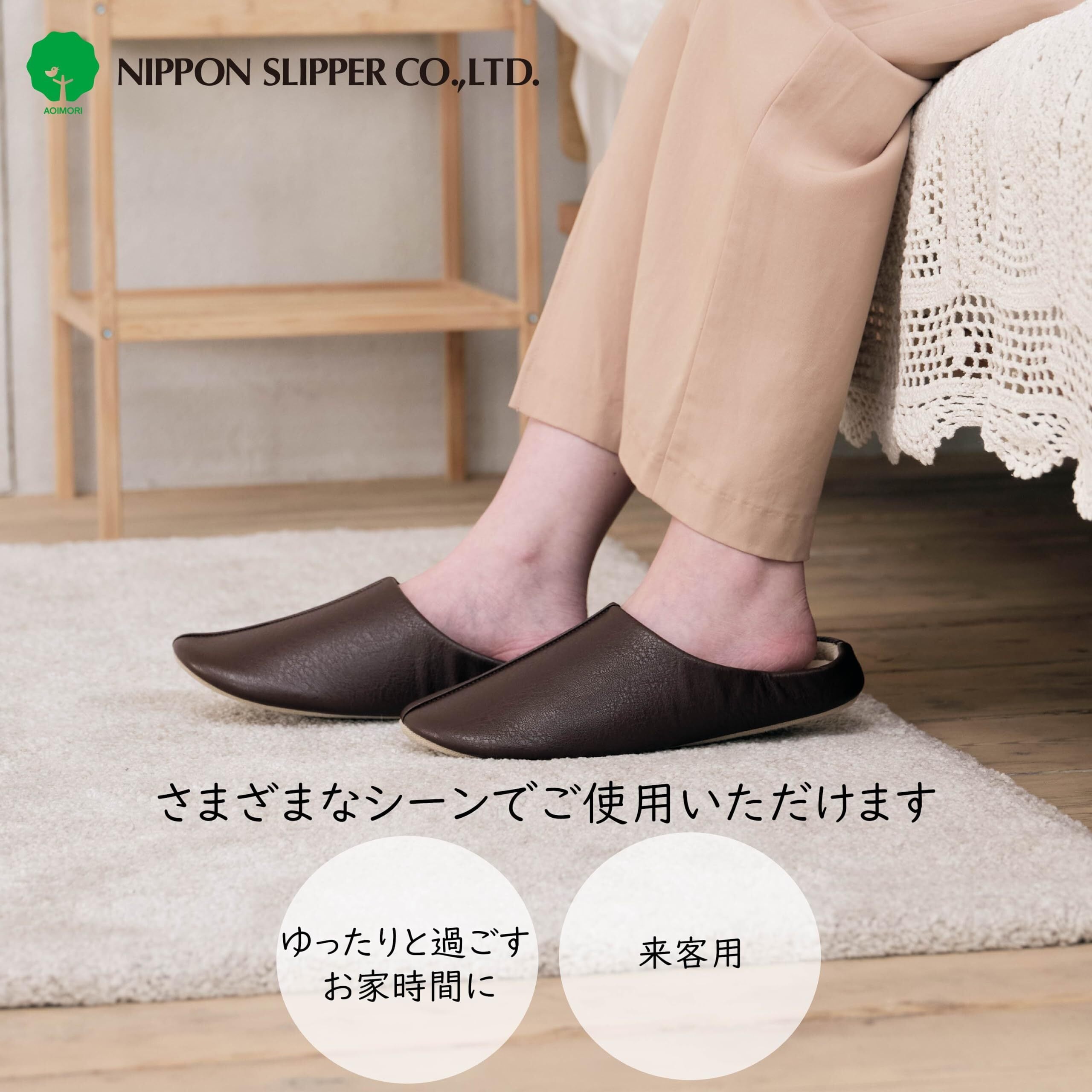 「[リラクシンホーム] ニッポンスリッパ」で、毎日の快適さを感じるおしゃれな室内体験をお楽しみください!/特徴:このスリッパは、優れた履き心地を追求したデザインが魅力で、ブラウンの落ち着いたカラーがどんなインテリアにもぴったりです。サイズ展開は24cmから27cmまであり、幅広い足のサイズに対応しています。