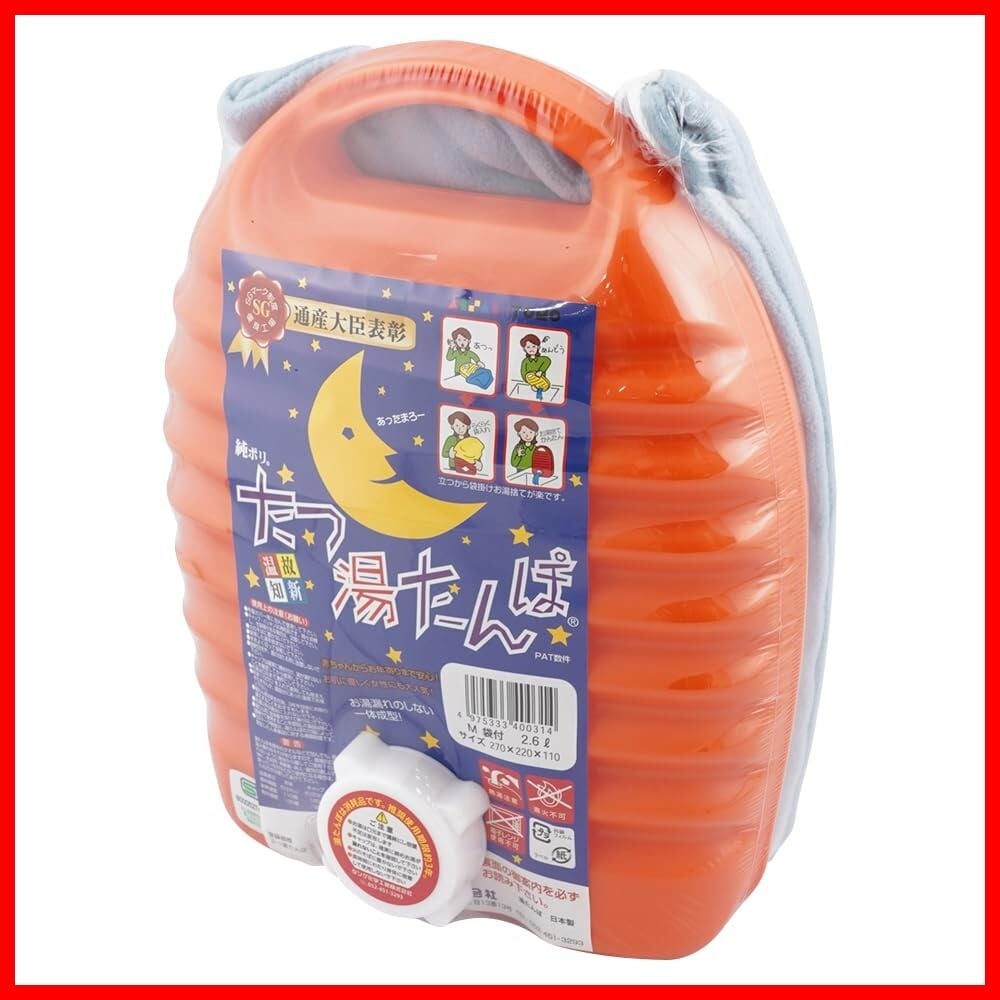 タンゲ化学工業 立つ湯たんぽ オレンジ 2.6L 袋付き TN00314