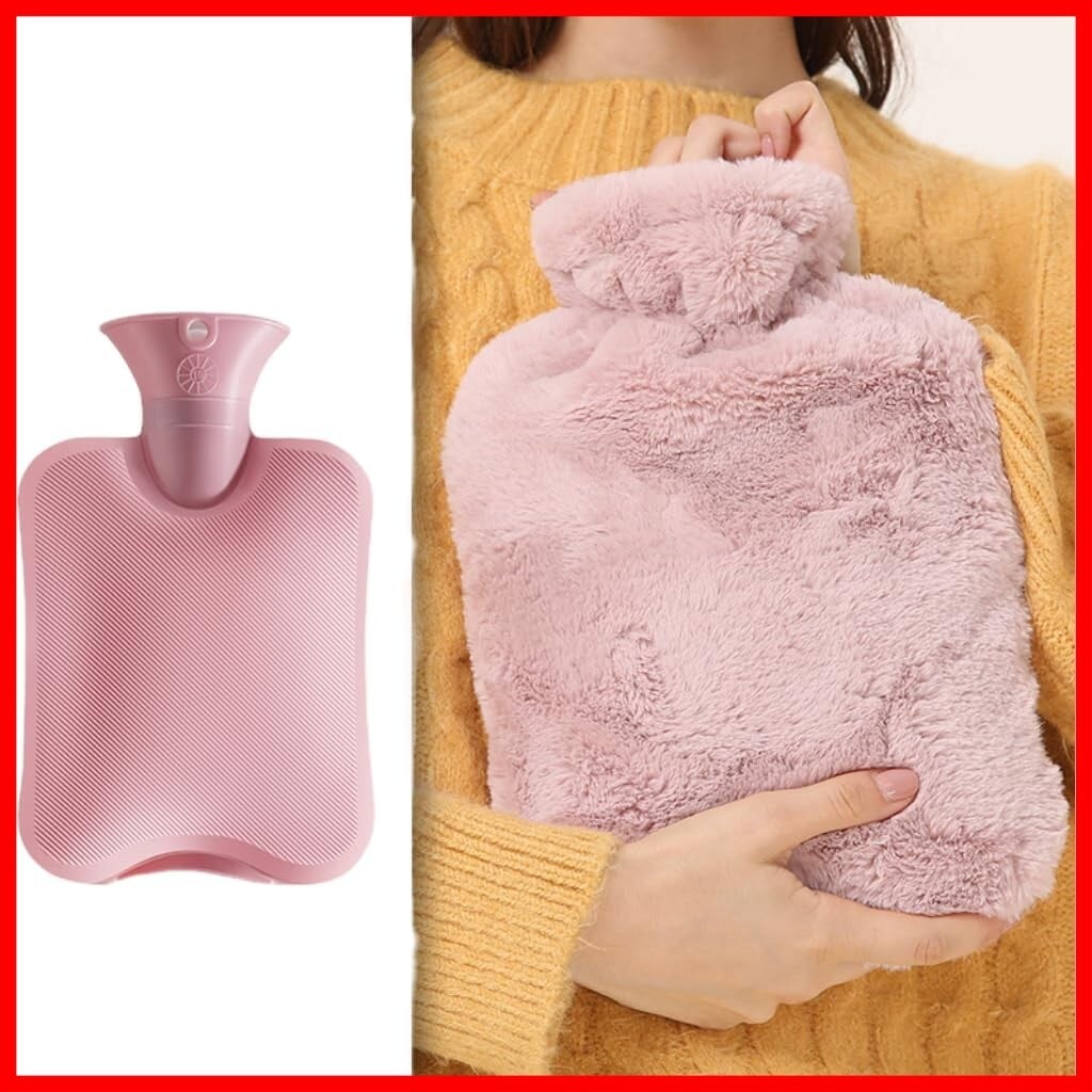 湯たんぽ 注水式 ゆたんぽ エコ湯タンポ 容量1L お湯入れ 注水式 洗える 可愛い 柔らか もふもふ 保温カバー付き 電気不要 防寒グッズ あったかグッズ 暖房器具 生理期最適 冷え性 腰を温め 防爆 ギフト (ピンク)