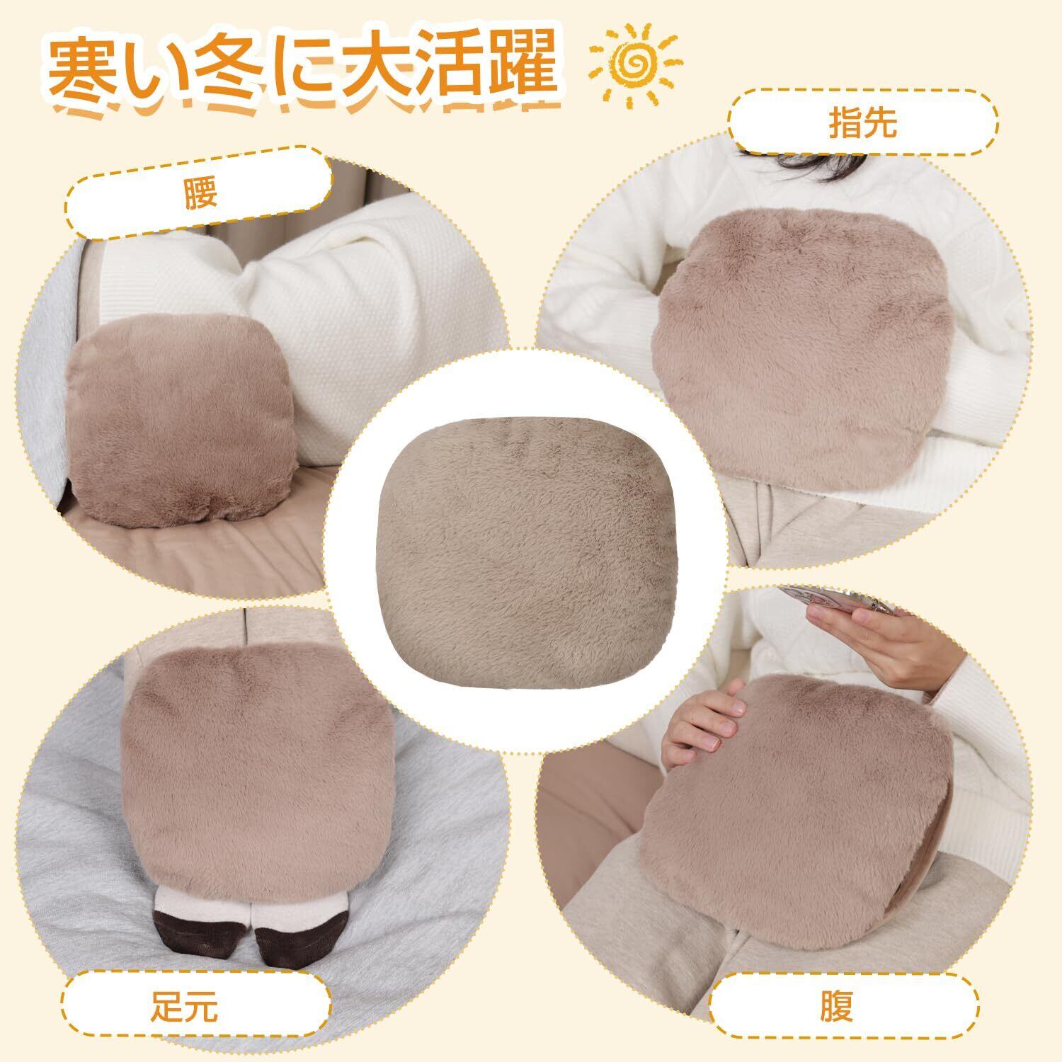 Imspace 湯たんぽ 充電式 ゆたんぽ 蓄熱式 電気湯たんぽ 7分急速充電 4~12長時間保温 エコ湯たんぽ 省エネ 過熱防止 防爆 ふわふわ保温カバー付 暖房器具 防寒グッズ 2024冷え対策 23.5×23.5cm (ブラウン)